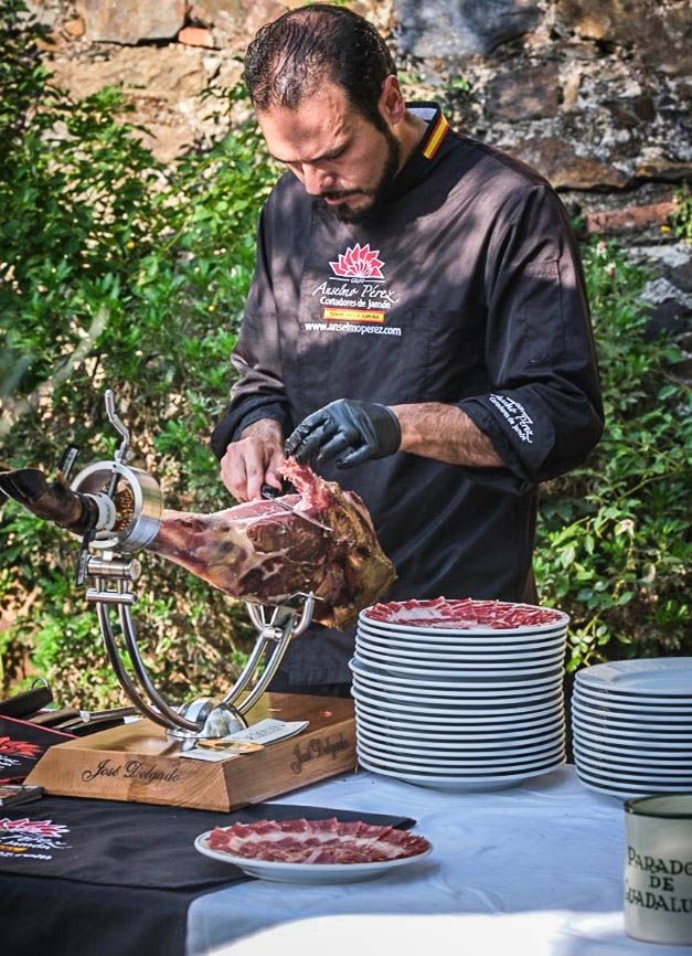 - Adrian er skinkeskærer, men ikke bare alm. skinkeskærer. Han er oplært af selveste verdensmesteren i at skære skinke, nemlig, Azelmo. De skærer selvfølgelig ikke i almindelige skinker, men derimod vil han stå og skære frisk iberico skinke til gæsterne, forklarer Malthe.
