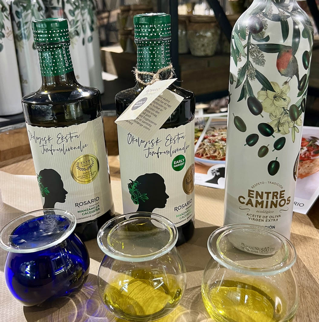 Der står også lækker olivenolie på menuen - og naturligvis kommer der også nogle fine spanske vine på bordet. Privatfoto