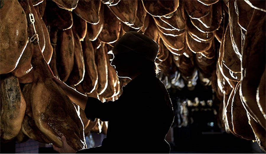 Modningen og aldringen af skinkerne er lige så vigtig som opdrættet og slagtning af dyrene. Forbenene, "paletas", og bagbenene, "jamones", køles ned natten over for at blive faste og dækkes derefter med havsalt i cirka en dag pr. kilo vægt. Derefter skylles de og hænges til tørre. Privatfoto