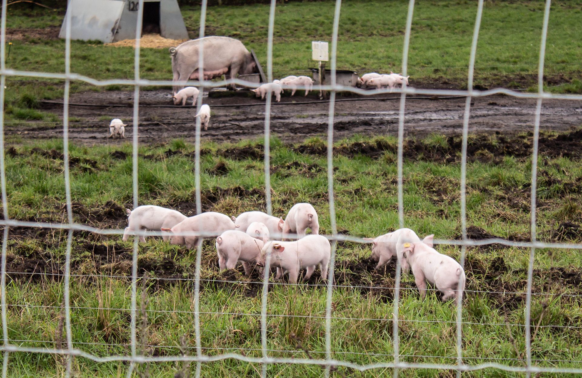 Lasse Lindberg har købt 11 grislinger hos Henrik Bovbjerg, og de bliver til jul en del af de lokale råvarer,som krone henter ind. Foto: Jim Hoff