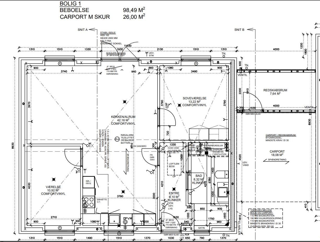 Huset er muret op indvendigt, og der er akustiklofter. Der er en lille græsplæne til alle husene samt flisebelægning. Forventet indflytning ligger omkring august 2024.