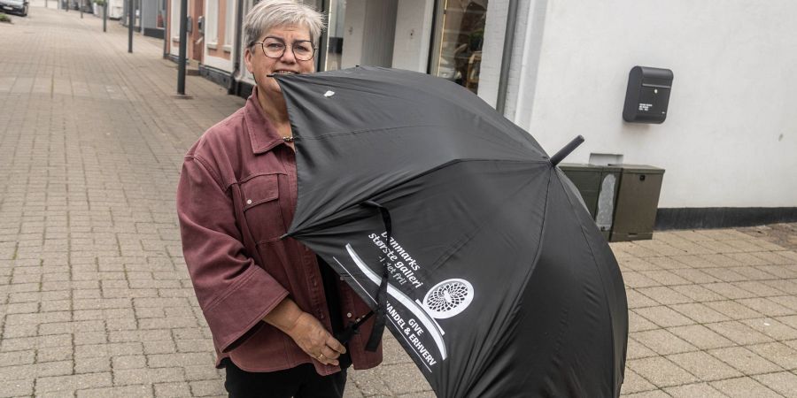 Hanne Lund, der er formand i Give Handel & Erhverv, fortæller nemlig, at foreningen har indkøbt en ordentlig stak paraplyer, som nu vil blive placeret i de butikker i byen, der er medlemmer af Give Handel & Erhverv.