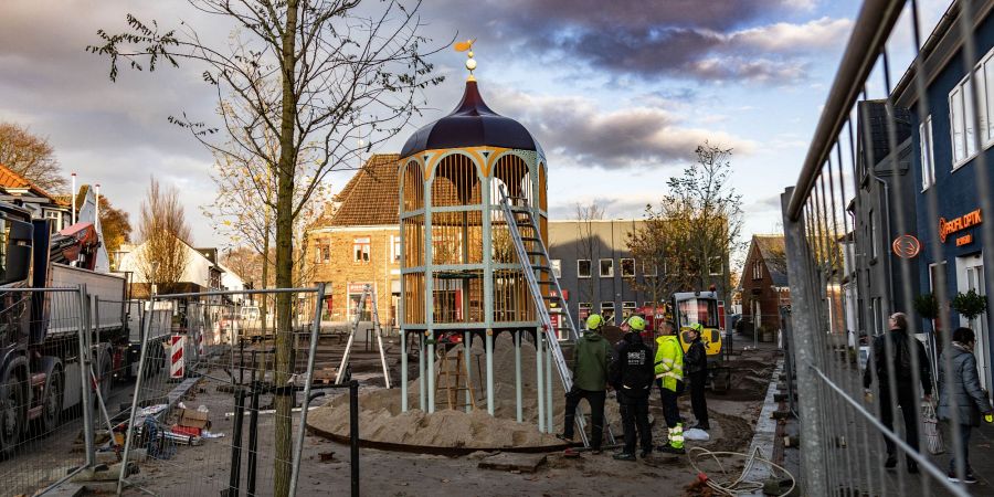 Foto: I forbindelse med renoveringen af Torvet i Give er der blandt blevet opsat en skulptur/voliere, som er et legehus, som børn kan muntre sig med. Foto: Jim Hoff