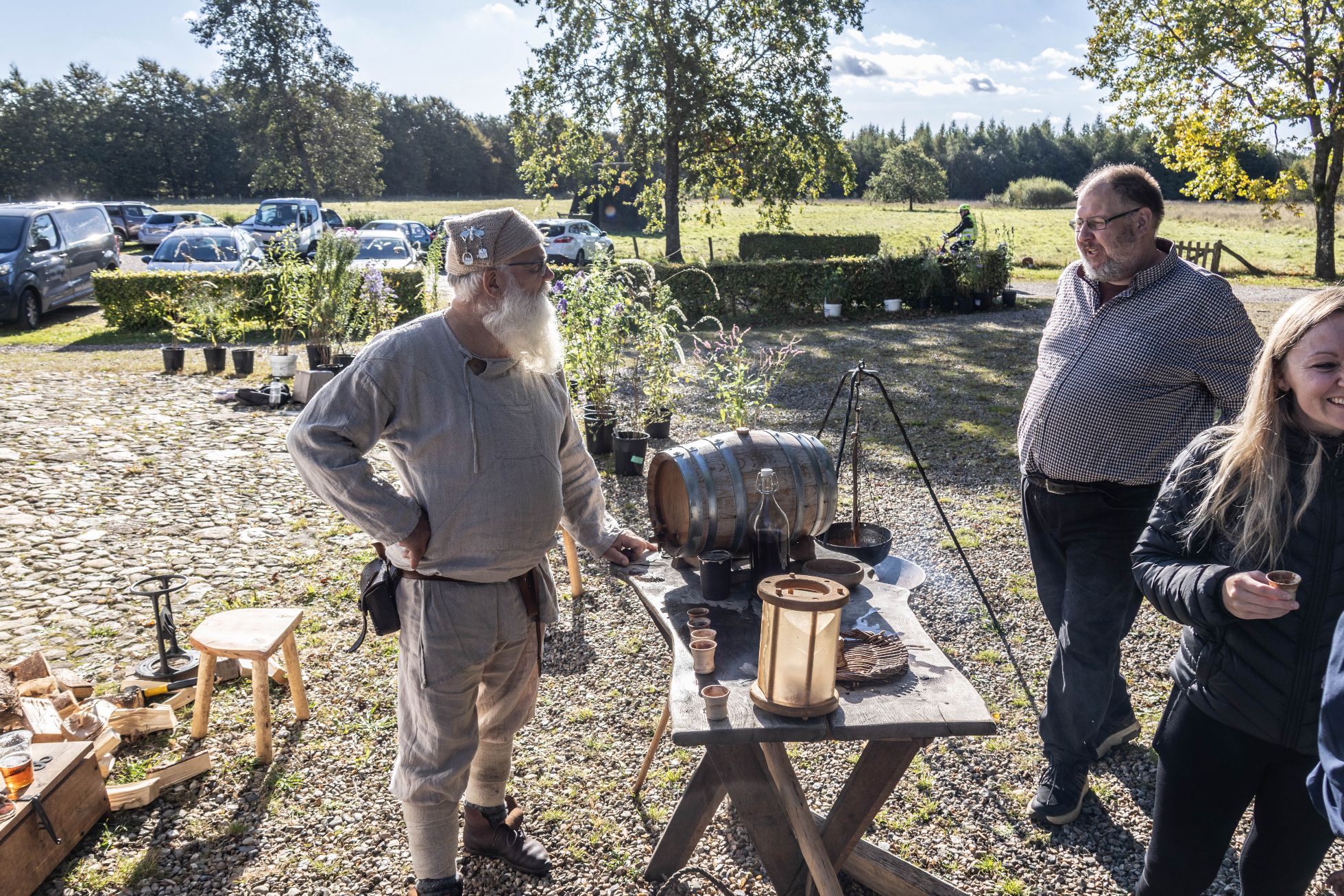 Det første man som gæst mødte på museet til høstmarkedet var en frisk mjødbrygger, og bedre indgangsvinkel til et besøg på museet kan man vel næppe forstille sig. Foto: Jim Hoff