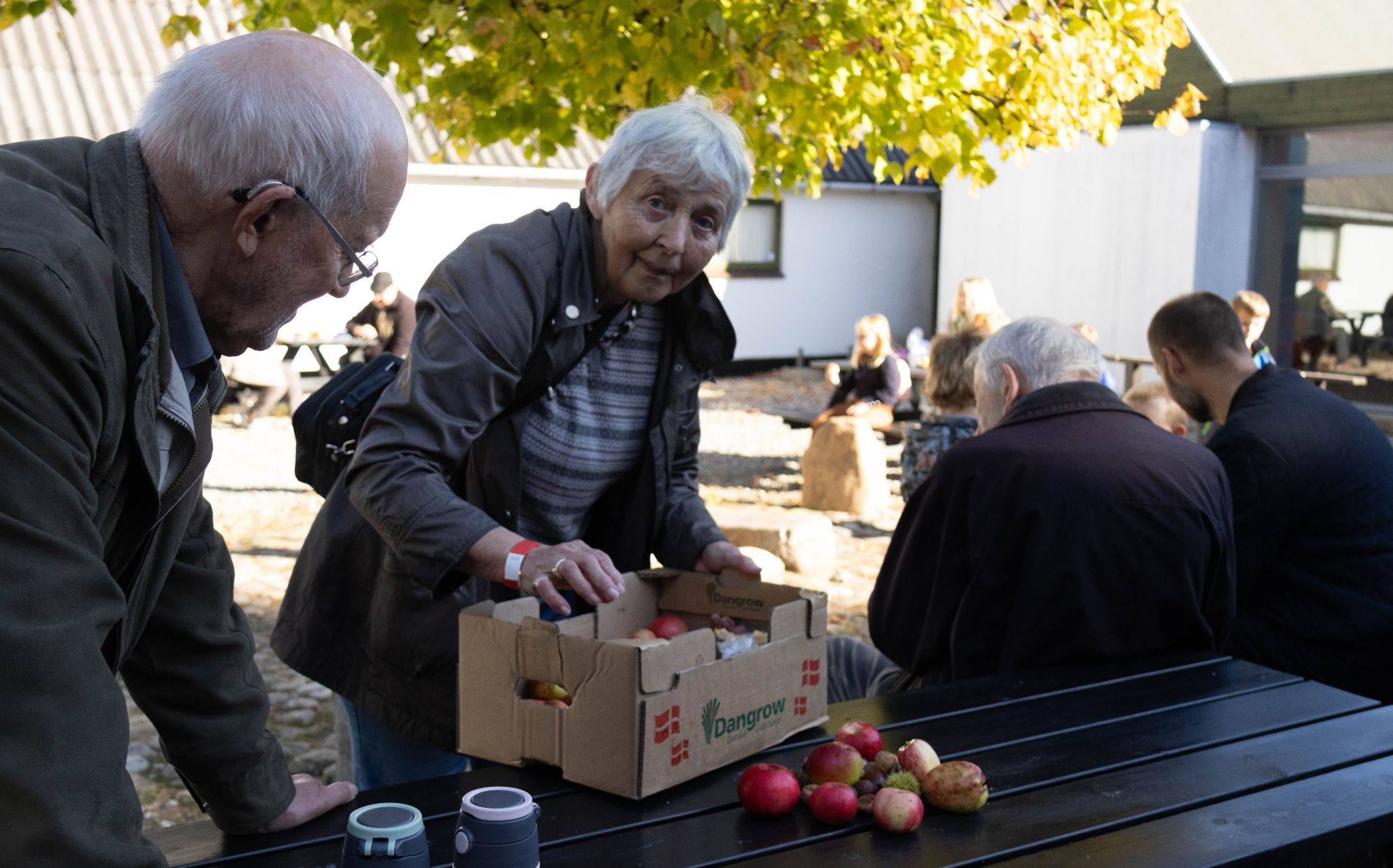 Med til et høstmarked hører naturligvis også æbler - og disse æbler her var just blevet høstet i museets helt egen æbleplantage. Foto Jim Hoff