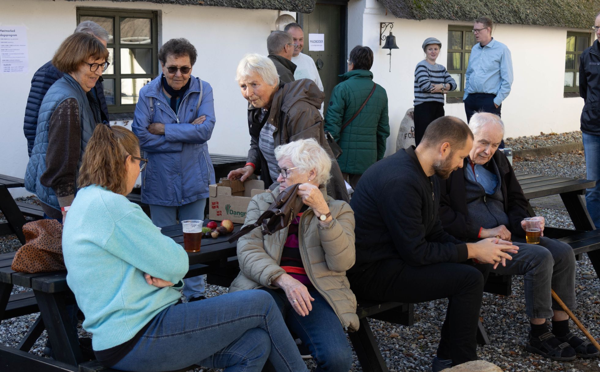 Der blev rigtig hygget og snakket igennem ude i den gamle gårdplads på museumsgården - også om gamle dage, selvfølgelig. Foto: Jim Hoff