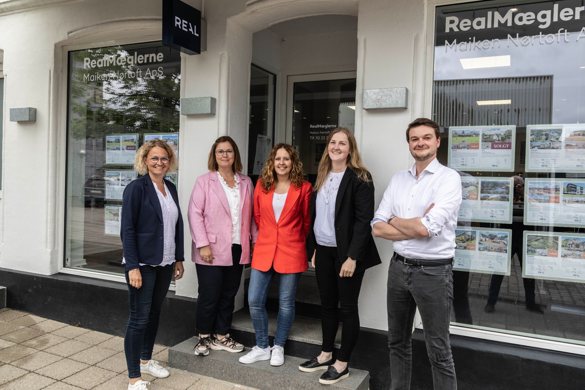 RealMæglerne i Give v/Maiken Nørtoft og hendes team har taget den positive tur på boligmarkedet i september sammen med RealMæglerkæden. Foto; Jim Hoff