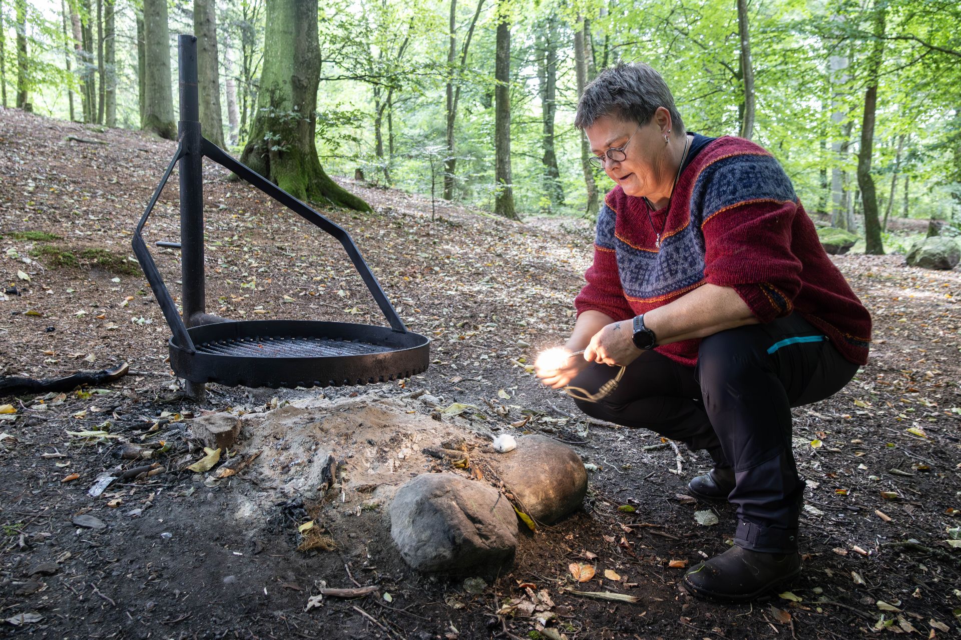 - At tænde bål giver også indre ro. Det foregår helt lavpraktisk med strygestål og vat, og når der så er gang i bålet, giver det ofte anledning til at få gang i snakken igen – her har bålet og den ro det signalerer, en rigtig god effekt – ikke mindst på børn, som ved at fokusere på selve bålet pludselig får hul på bylden og fortæller løs, siger Marianne.