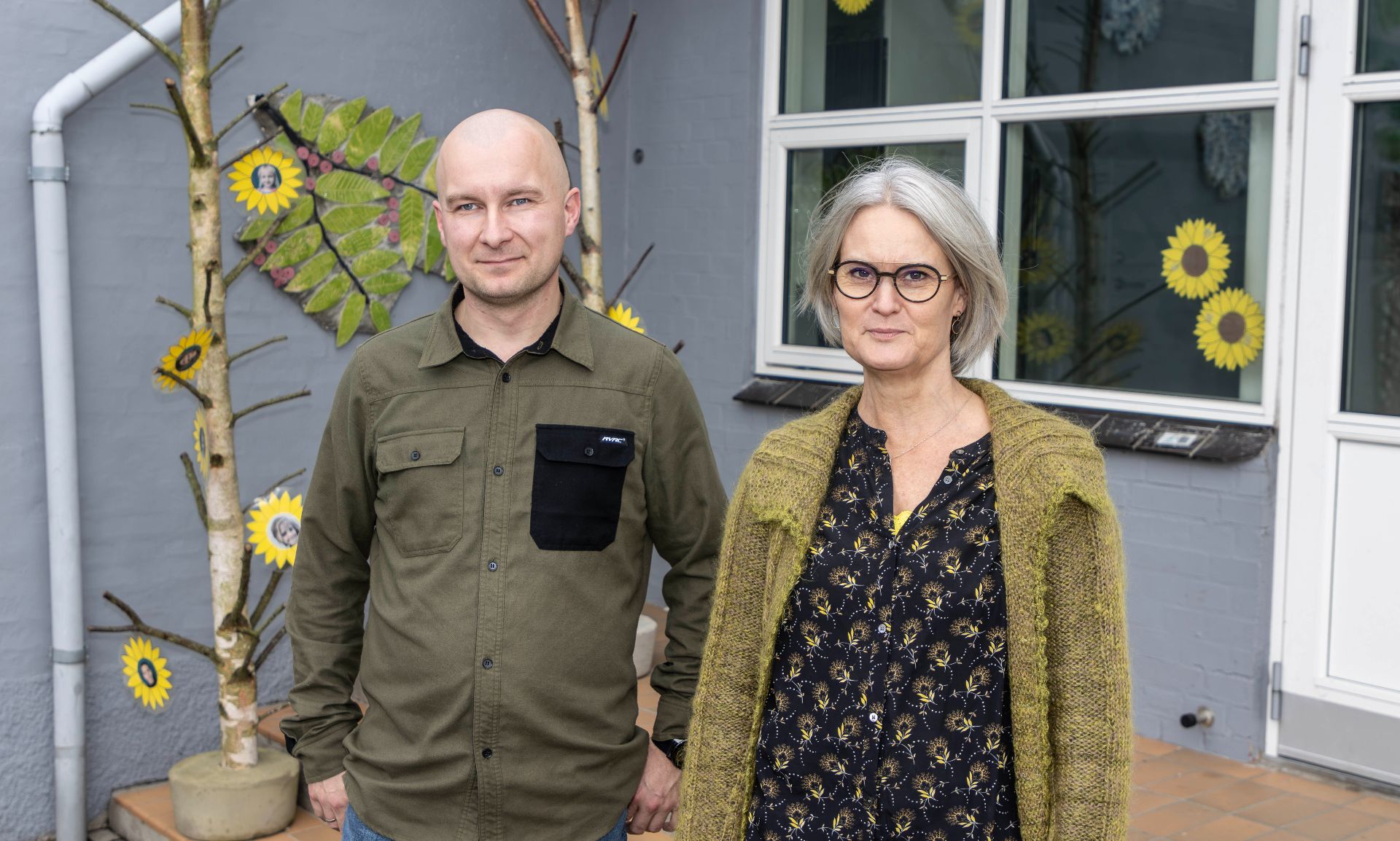 Jette Bech Mathiesen og skolebestyrelsesformand Lasse Hamer Hedeby ser frem til et godt og langt samarbejde omkring Hedegård Friskole. Foto: Jim Hoff
