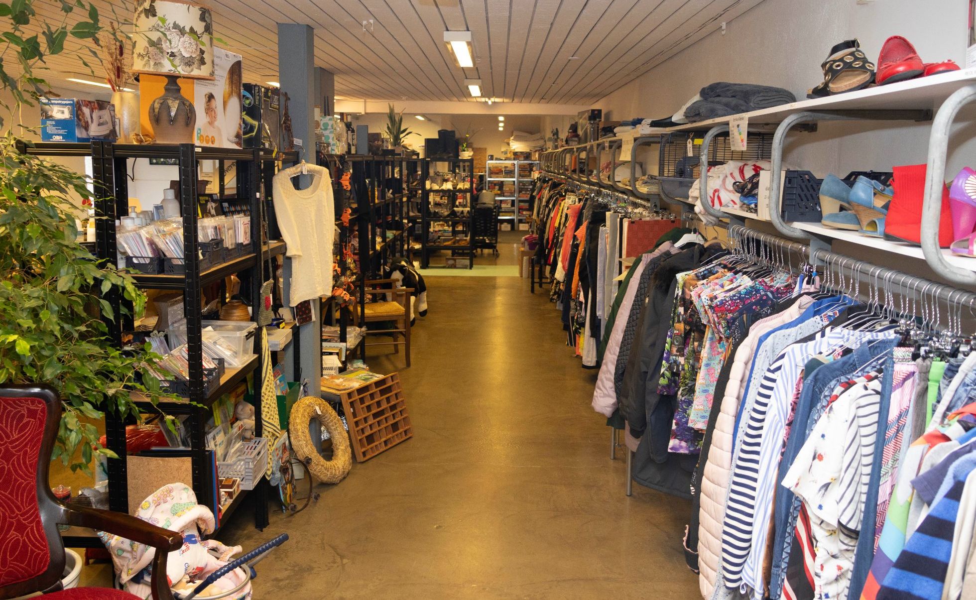 Second hand-butikken Fruerne K. startede tilbage i 2020 med Pernille Ellegaard Kruse og Rikke Nancke som initiativtagere. Men nu lukker de butikken den 30. september, da de begge mangler tid, kræfter og overskud til at drive butikken videre. Foto: Jim Hoff