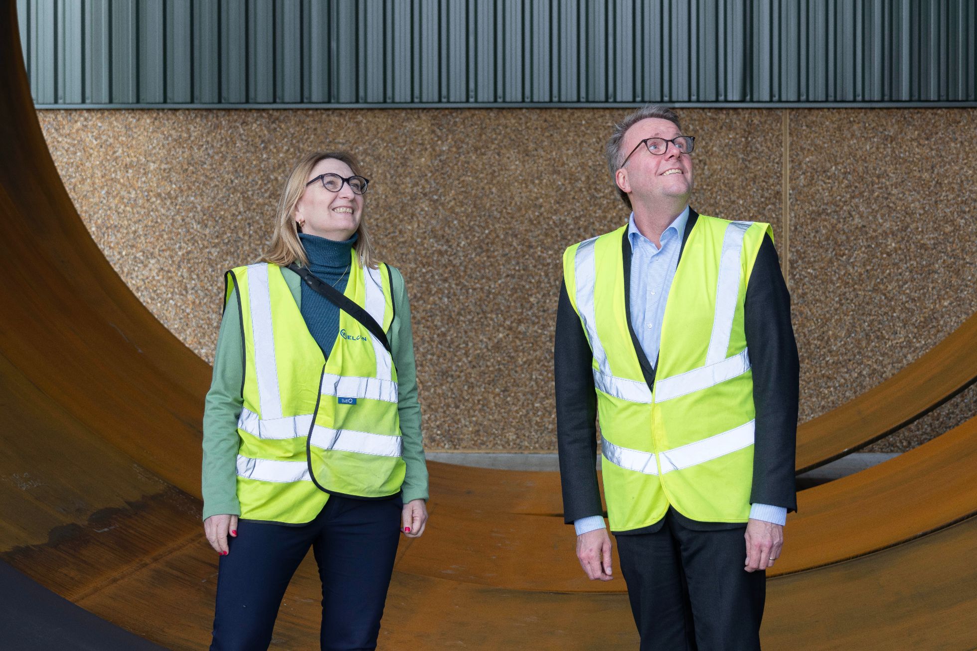 Erhvervsminister Morten Bødskov og det lokalt valgte folketingsmedlem, Birgitte Vind, besøgte mandag vindmølletårnproducenten Welcon - og var meget begejstrede for det, de så på rundturen. Foto:Jim Hoff