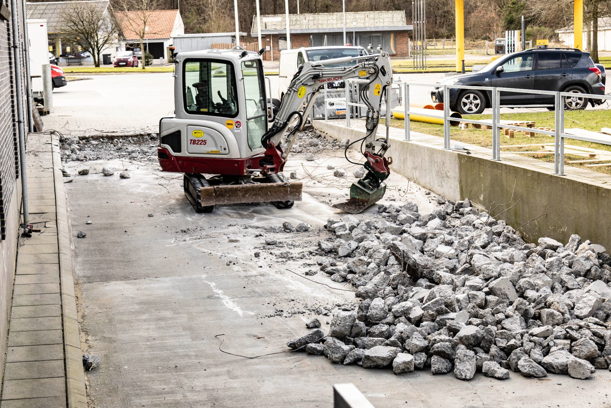 Også udvendigt bygges der om, Her er det gang i en anden og mere funktionel opbygning af den læsserampe. spm lastbilerne femover skal bruge, når de kommer med varer til butikken. Foto: Jim Hoff