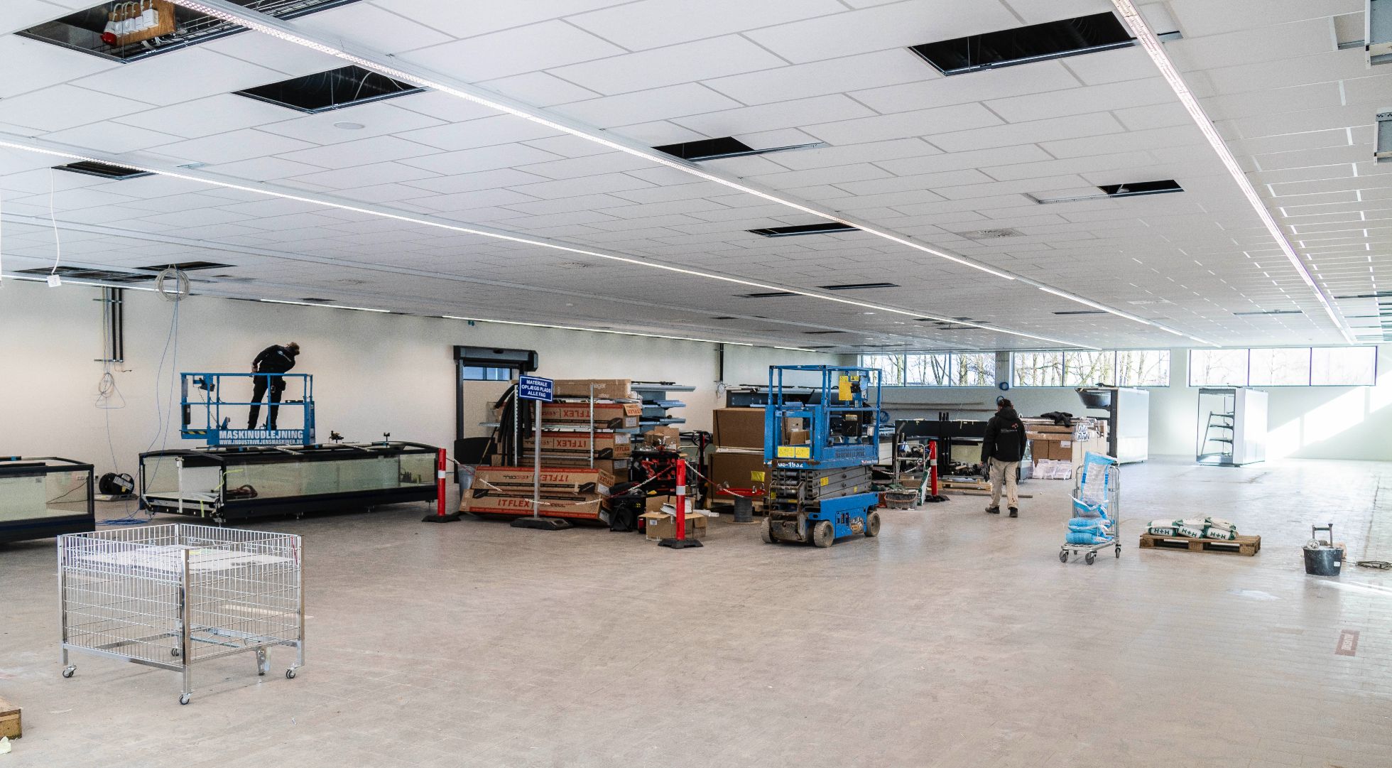 Den 11. marts kan Louise og Dennis gå i gang med at fylde butikken op med varer. Lige nu bliver butikkens inventar og look transformeret fra ALDI til REMA, og det er en noget større øvelse, end man lige tror.