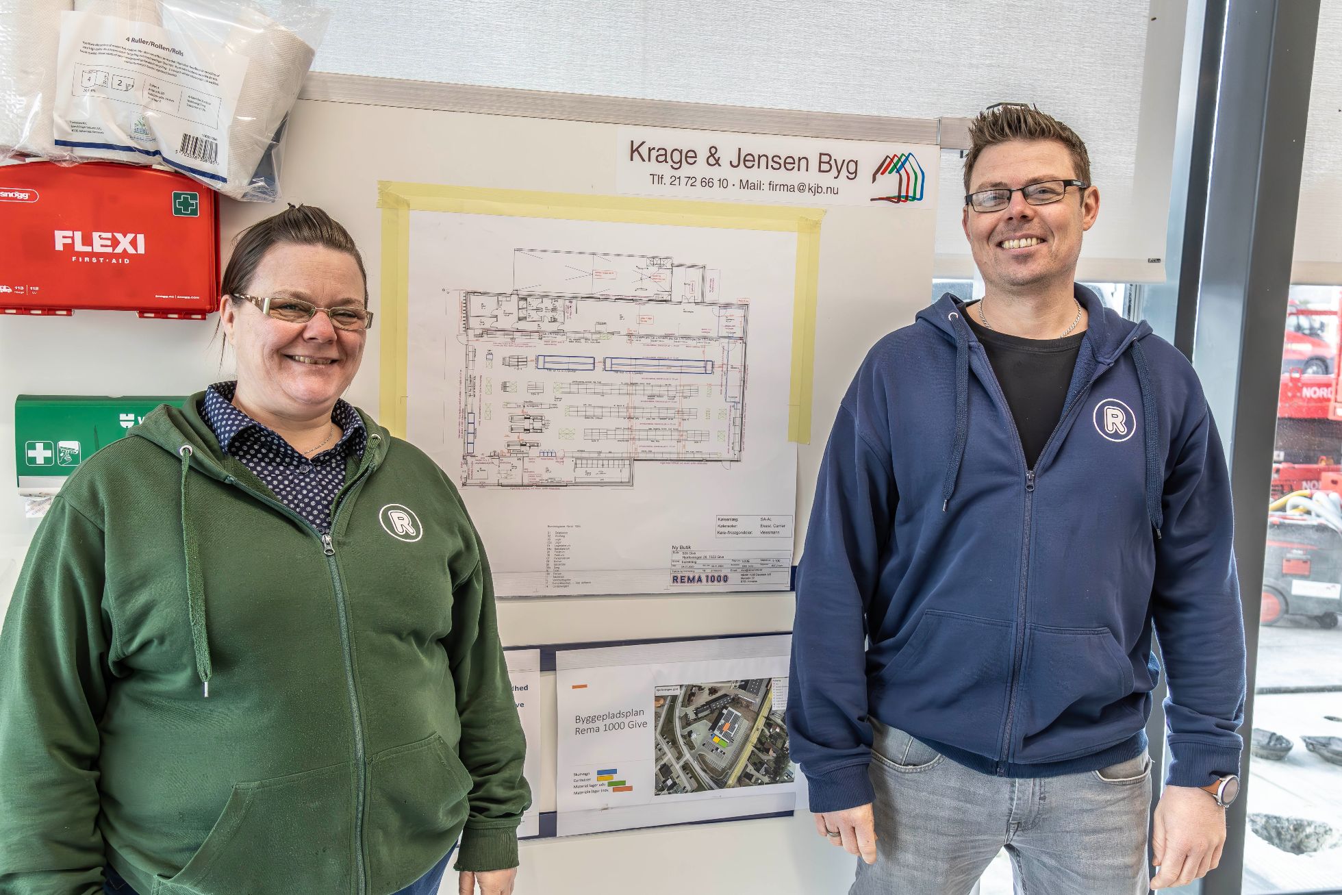 Louise og Dennis har fuld tiltro til de professionelle håndværkere, der i disse uger er ved at forvandle den tidligere ALDI-butik til en spritny REMA 1000-butik på Hjortsvangen. Foto: Jim Hoff