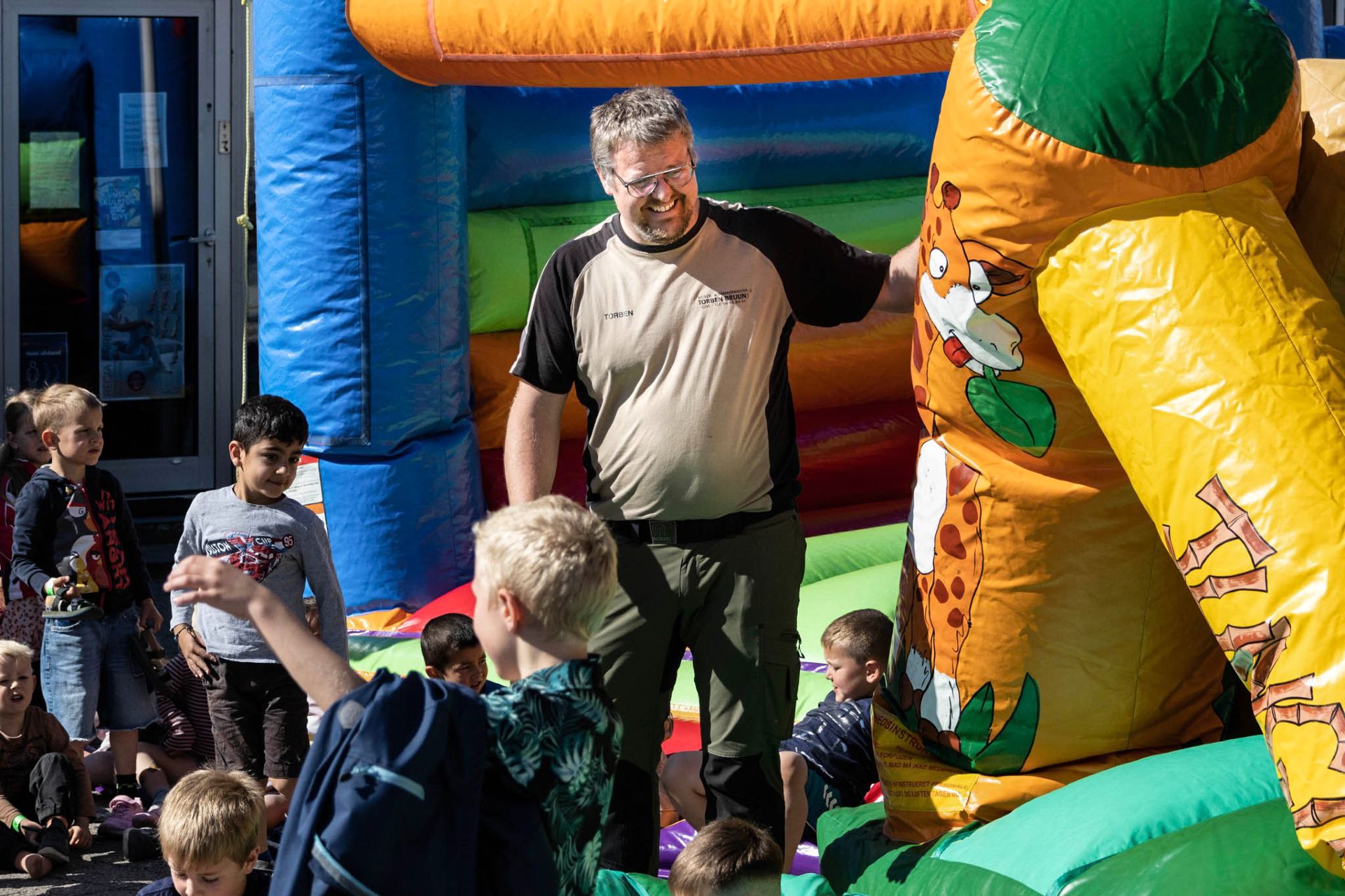 Når der er fest i bymidten, er Torben Bruun meget ofte med - både som ham der tager ansvar for, at det praktiske kører, og som den glade legeonkel, der gerne lige flikker et par stylter sammen til ungerne. Foto:Jim Hoff