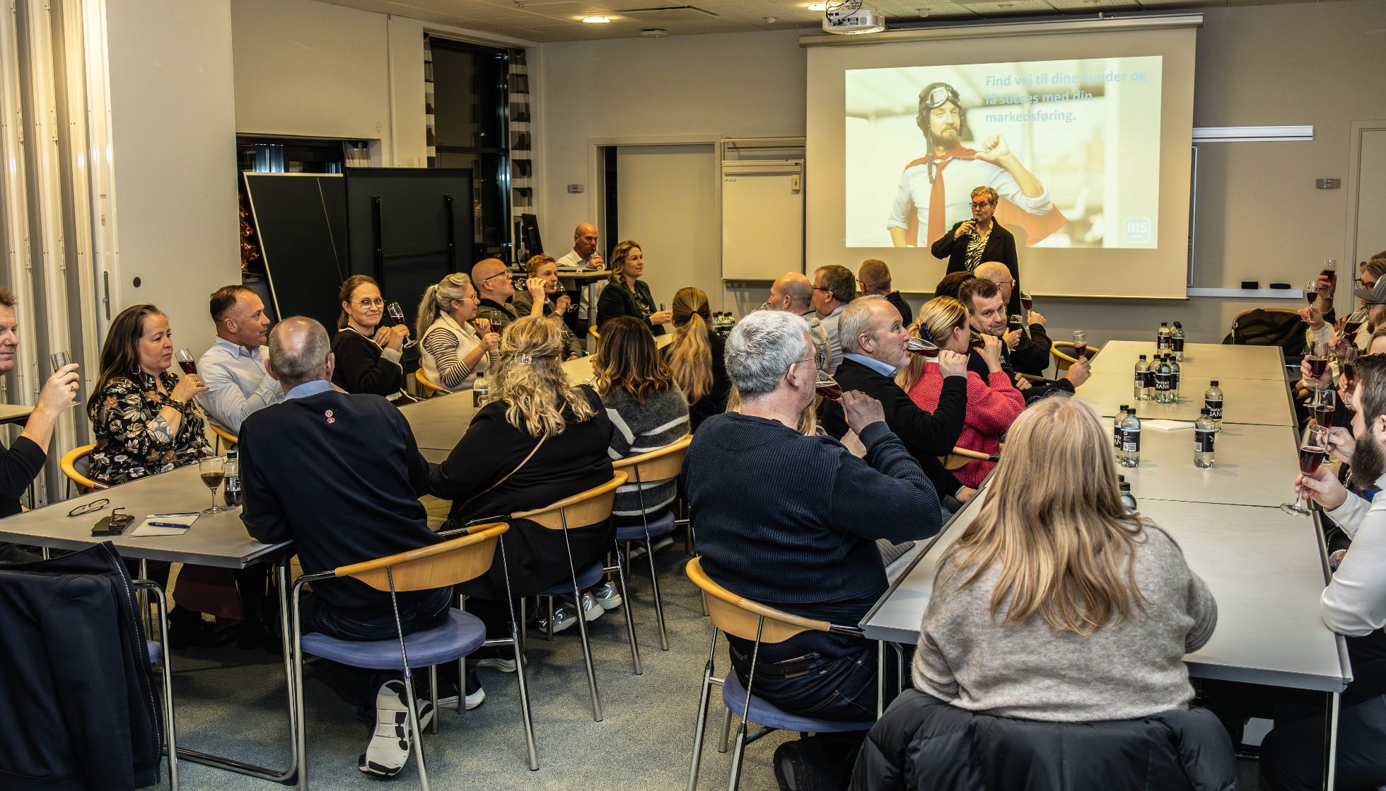Her på ’jomfrurejsen’ havde man valgt at hidkalde Dennis Skovgaard fra BIS Media, der er specialister i markedsføring. ’Gerningsstedet’ for nytårskuren var 1. salen hos Vestjysk Bank, der lagde konferencerum til, og der var sørget for lækre velkomstbidder, øl og vand samt kransekage og bobler i bedste nytårskurstradition.