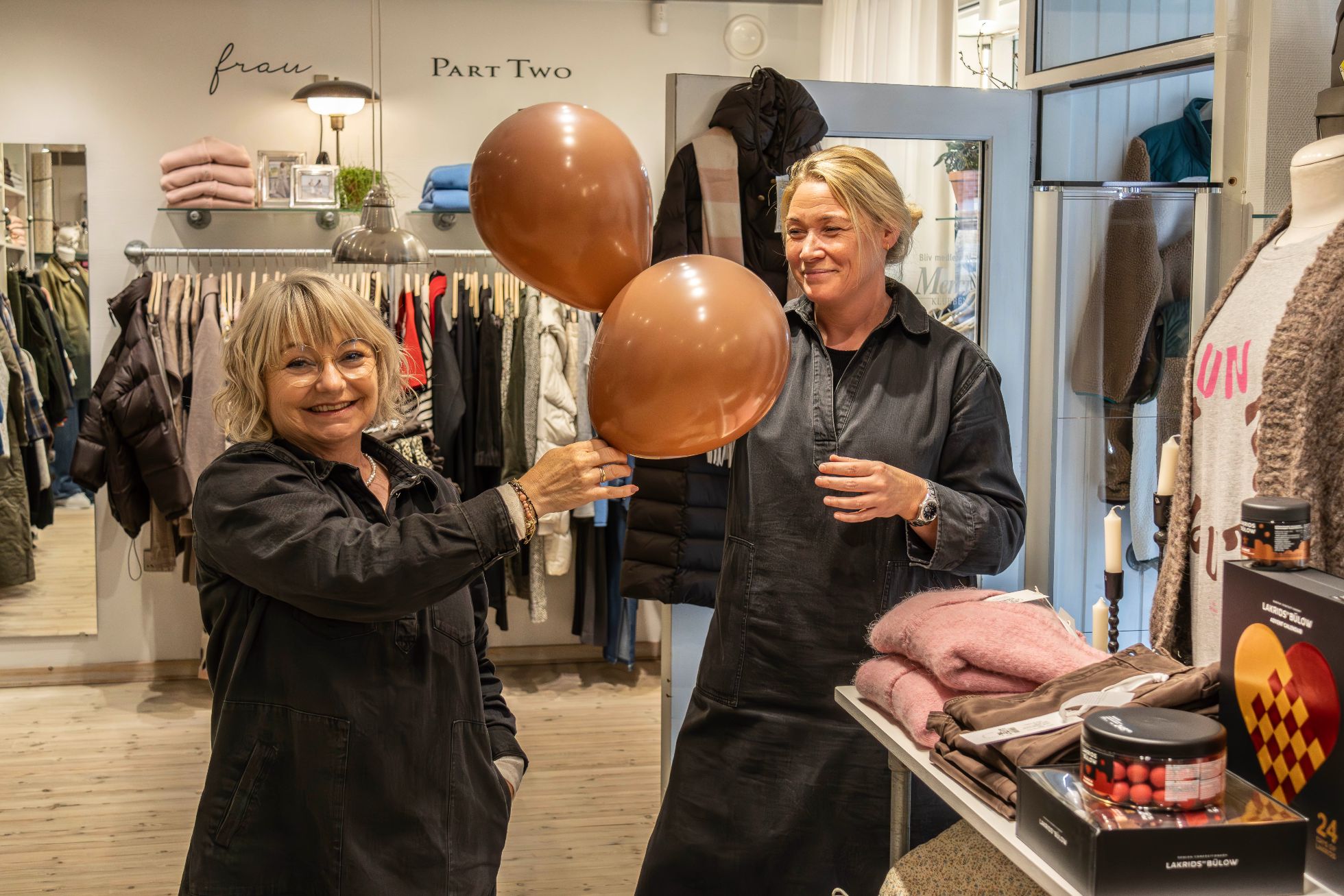 Marianne og Lone er torsdag, fredag og lørdag i uge 40 klar med en masse nyoppustede balloner med indbyggede lækre gevinster. Og det to tøjpiger glæder sig til rigtig sat forkæle kunderne. Foto: Jim Hoff