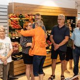 Samtlige gæster, og dem var der mange af, fik en krammer af Gitte, og snakken gik lystigt på tværs af butikken. En rigtig flot dag for jubilaren, der brillerede ved at stille op i den Brugs-kittel hun havde på, da hun startede i Brugsen for 40 år siden. Det var virkelig klasse!