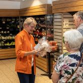 Indenfor i Brugsen havde uddeler Stefan Skøtt og personalet linet op med en fin bar med forfriskninger til dagens gæster, og til stede var også salgsrådgiver Allan Blom Andersen fra Coop, så koncernen var også med til at hylde dette bemærkelsesværdige jubilæum.