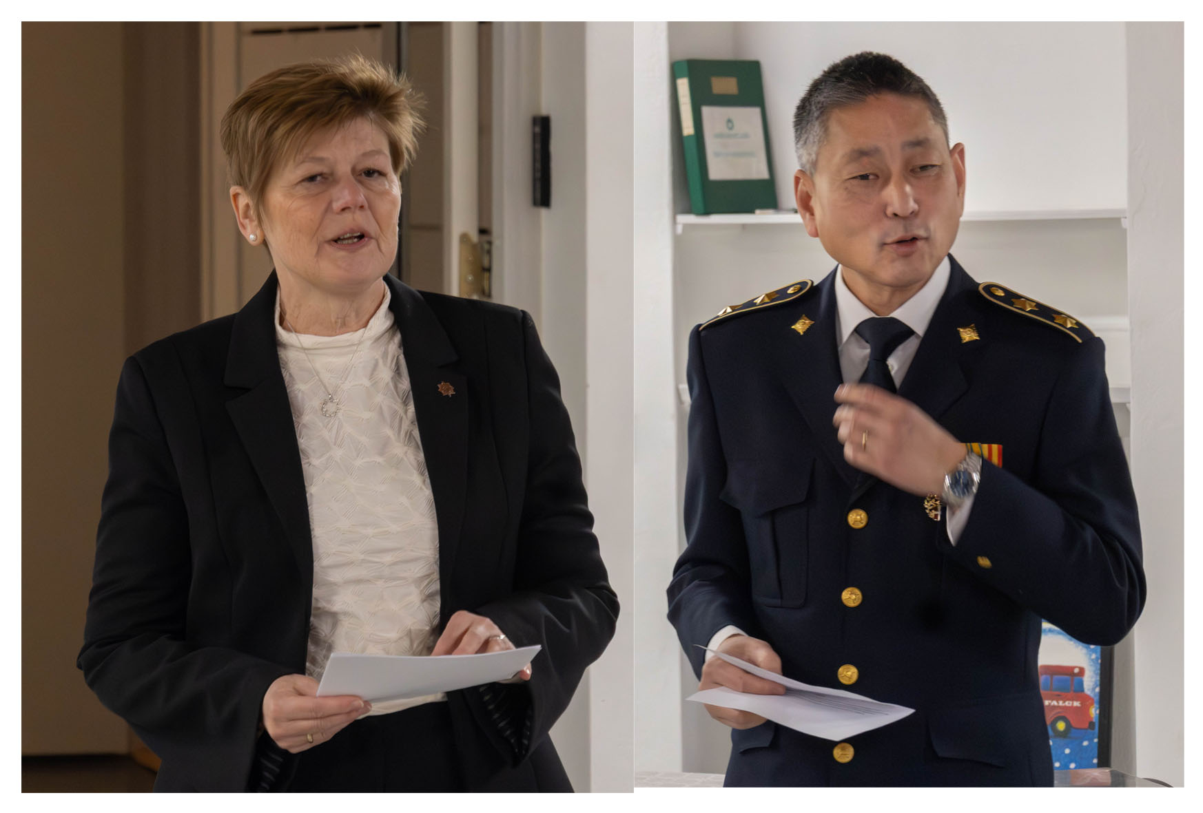 Foto 3: Gerda Jørgensen, der sidder i Beredskabskommissionen i Vejle Kommune, og chefen for Vejle Brandvæsen, Thomas Dietz, havde også indlæg ved nytårsparolen i Give. Foto Jim Hoff