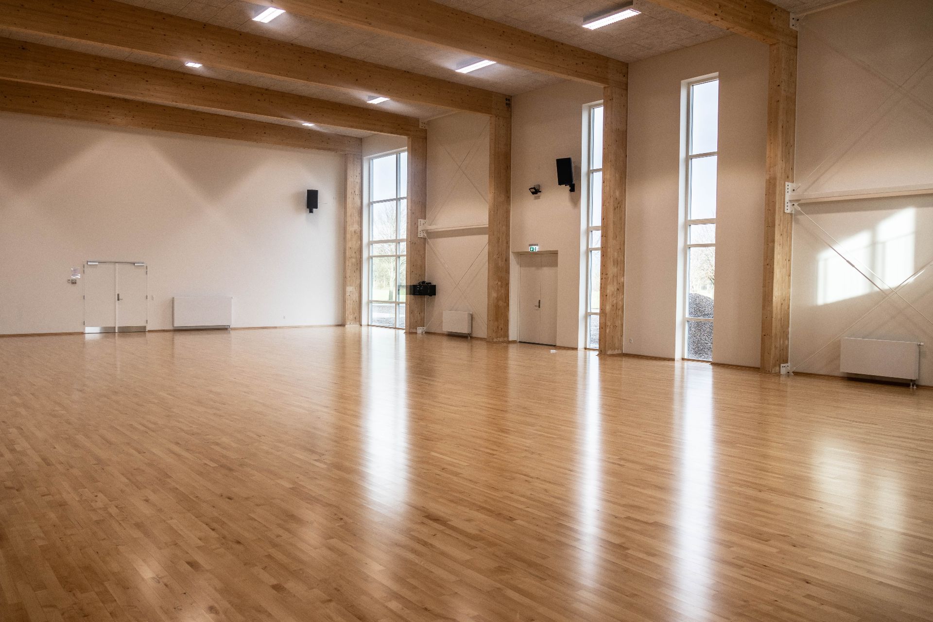 - Det er en hal uden streger til boldspil. Den skal bruges til mange ting, f. eks rytmisk gymnastik, lege, dans, som scene, og både de små børn i vores børnehave og de helt store i 9, klasse kan bruge hallen, forklarer Søren Petersen.
