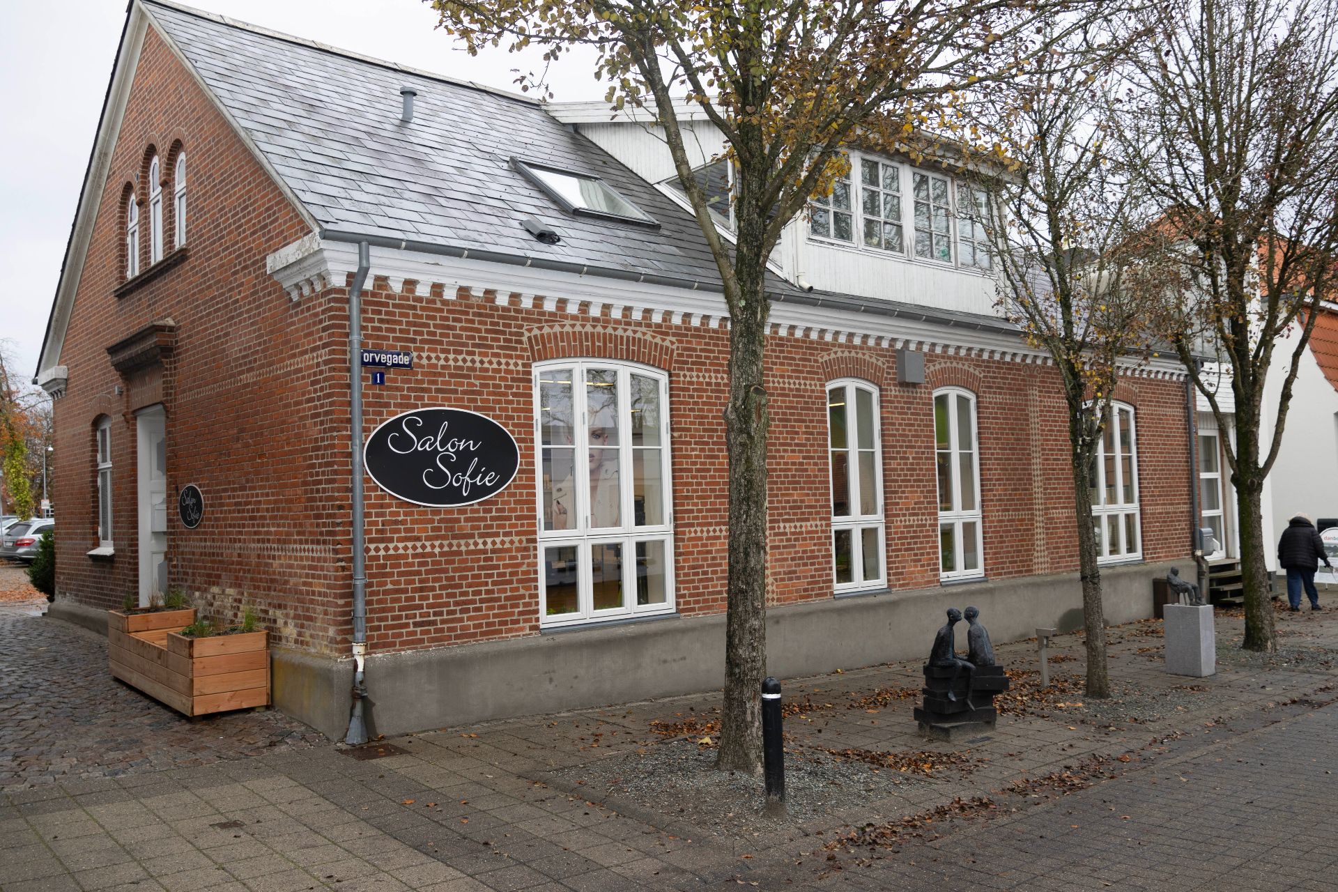 DET GODE BUTIKSLIV: Hun åbnede for tidsbestilling over telefonen den 27. oktober, altså en uge før hun genåbnede sin frisørsalon. Og de første kunder er allerede tikket ind hos Sofie Bjerre Henriksen, der 2. november genåbnede sin frisørsalon Salon Sofie i Torvegade 1 i Give efter 10 måneders barsel.