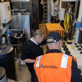 Og begejstringen bliver endnu større, da Claus pludselig finder en stor pakke frem med ene gode sager til Thomas. Det er nemlig en pakke fra Washtec, som leverer vaskefaciliteterne til Brugsens vaskehal.