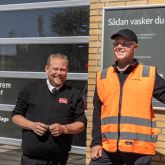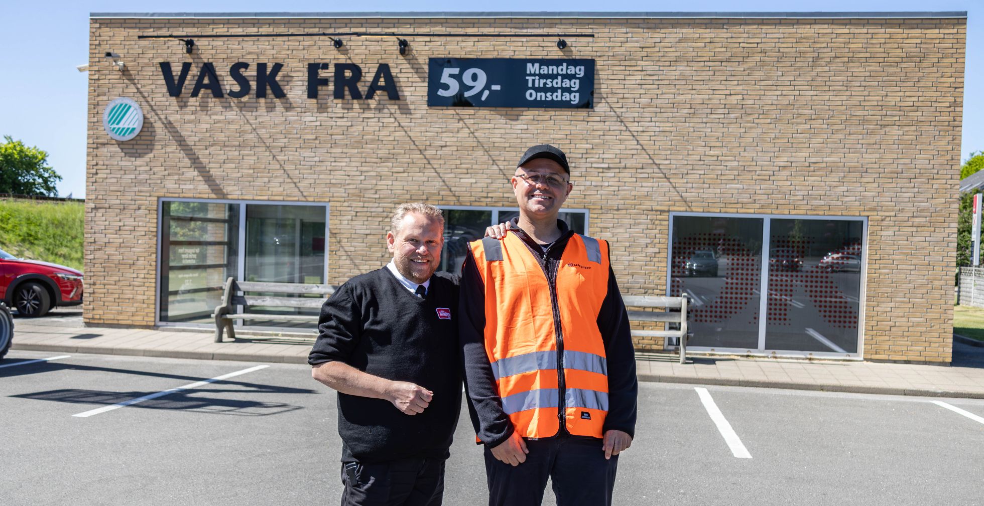 Uddeler Claus Villumsen er rigtig glad for Thomas Jepsens hjælp med at holde opsyn med vaskehallen, og det er trygt og godt at vide, at vaskehallen er under opsyn af den ambitiøse vaskehals-supervisor. Foto: Jim Hoff