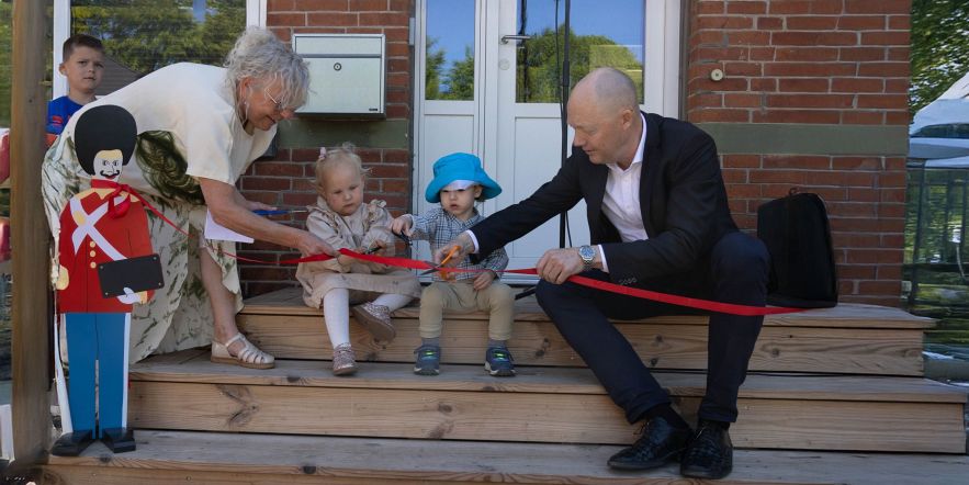Alberte og Mikkel klippede snoren med borgmesteren, da Ikær - Børnenes Hus holdt indvielse