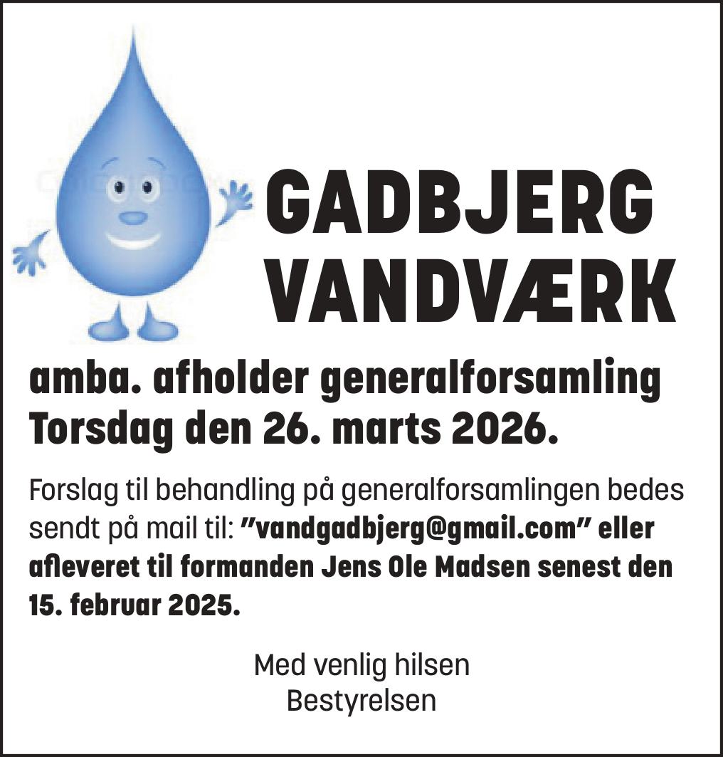 GADBJERG VANDVÆRK GENERALFORSAMLING