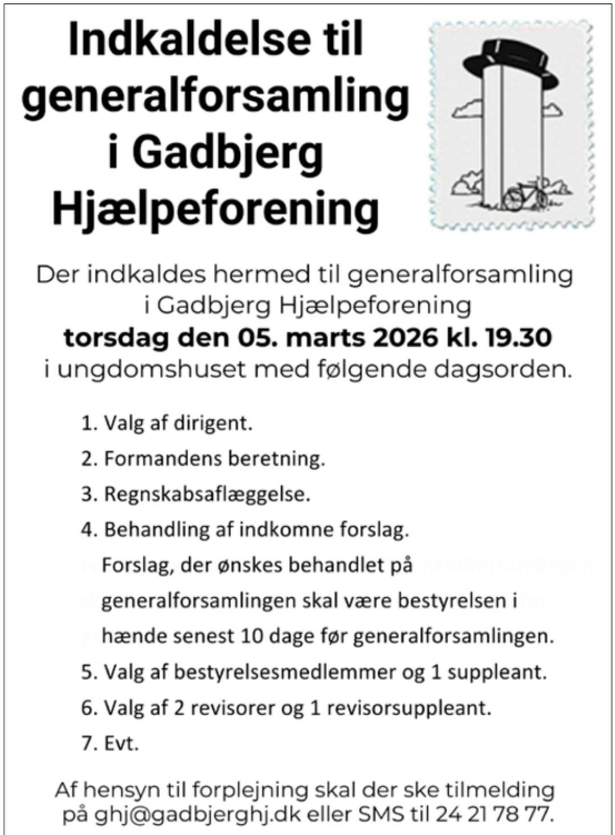 GENERALFORSAMLING I GADBJERG HJÆLPEFORENING