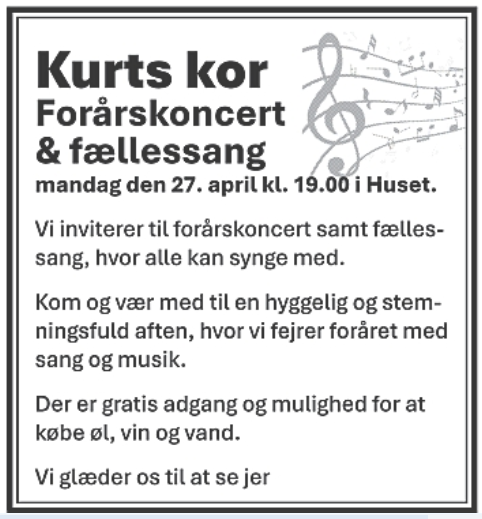 KURTS KOR FORÅRSKONCERT & FÆLLESSANG