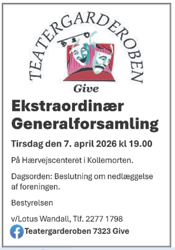 TEATERGARDEROBEN EKSTRAORDINÆR GENERALFORSAMLING
