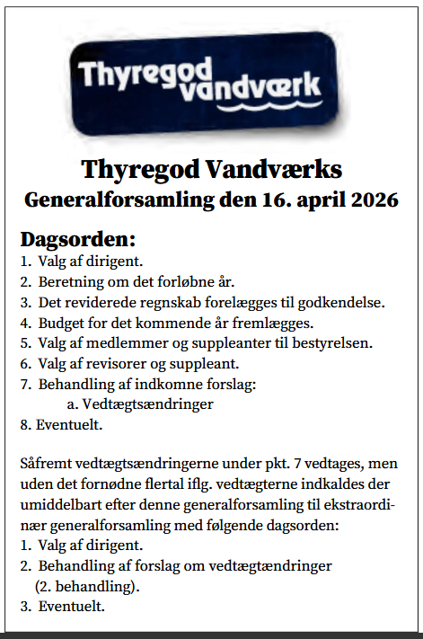 THYREGOD VANDVÆRK GENERALFORSAMLING