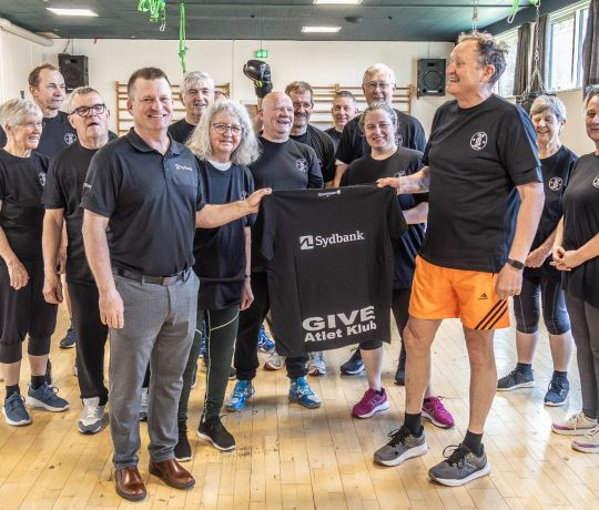 AL Sydbank i gavehumør: Samtlige 140 medlemmer af Give Atlet Klub har fået nye t-shirts