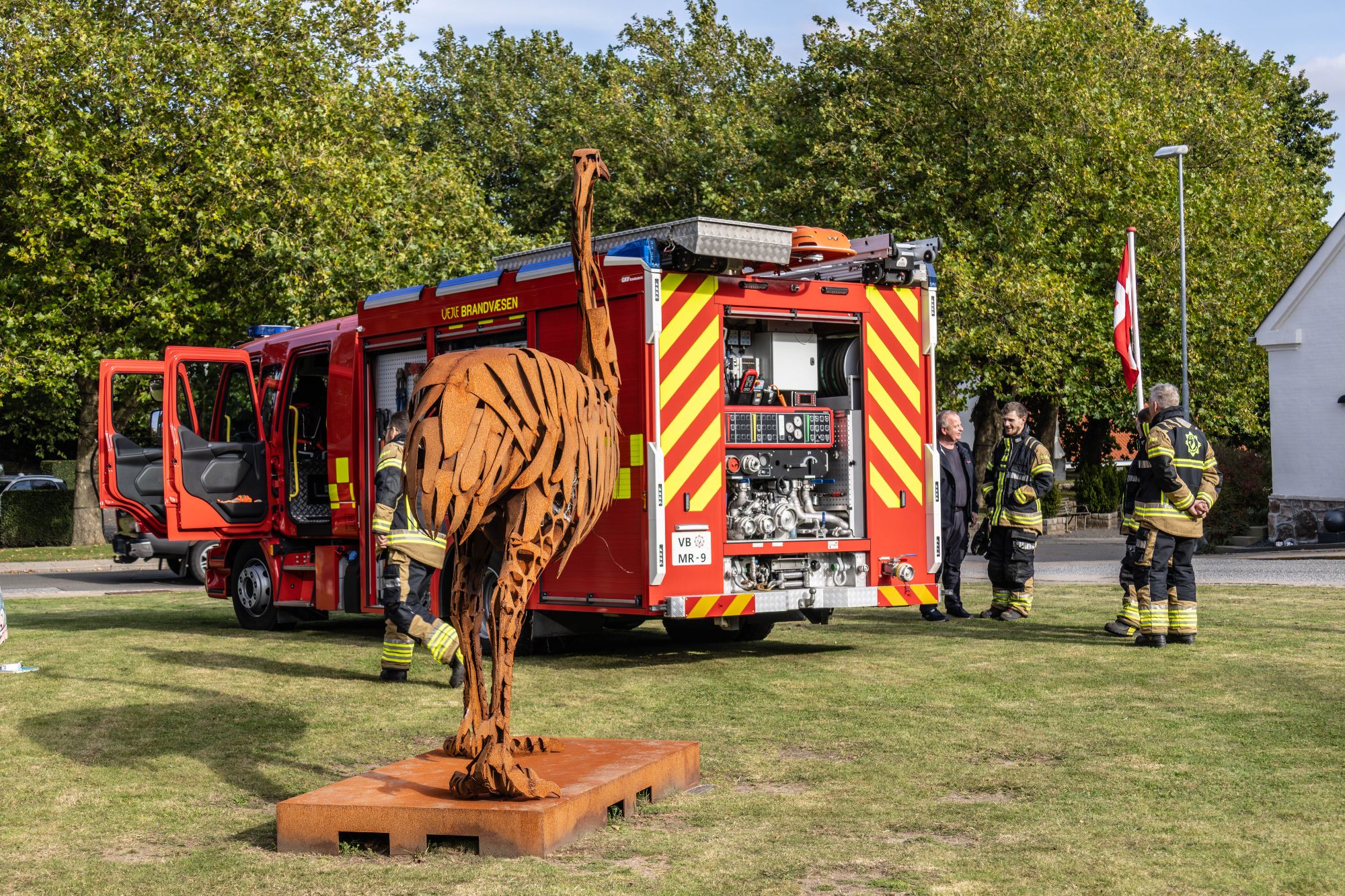 Brandvæsenet i Give var i dagens festlige anledning på plads med en brandbil, som de på dagen medbragte børn kunne få lov til at komme ind og sidde i. Foto:Jim Hoff