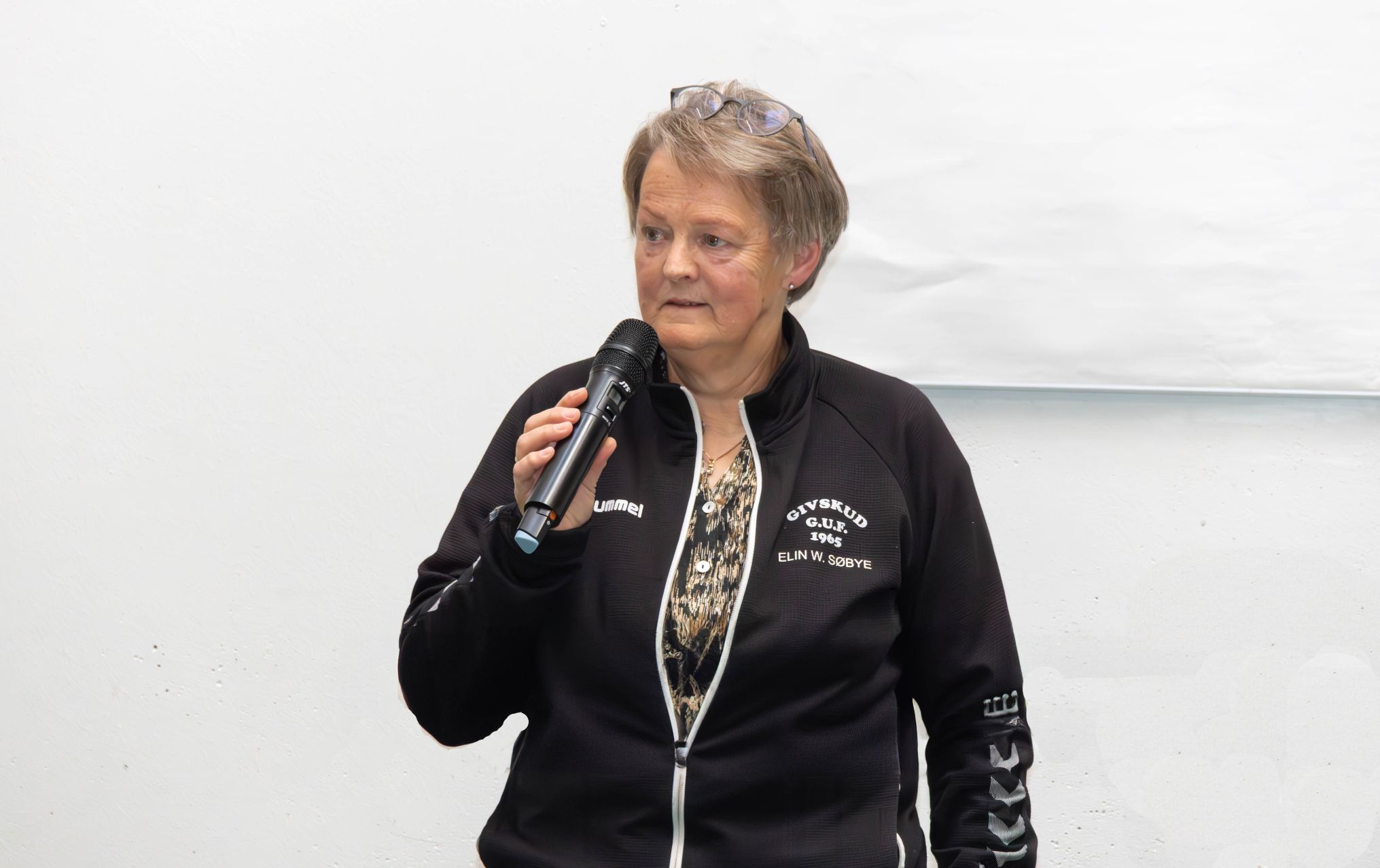 Elin Søbye var en af de absolutte drivkræfter bag kunstgræsbanen i Givskud, og hun holdt en fin tale i anledning af banens 10-års jubilæum, hvor hun fortalte historien om banens tilblivelkse. Foto: Jim Hoff
