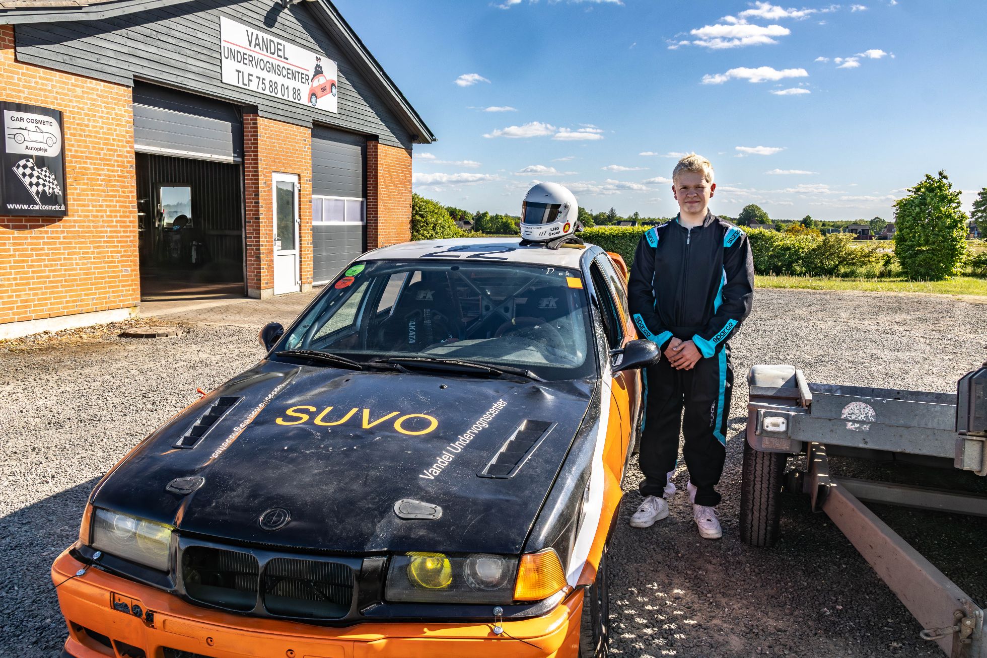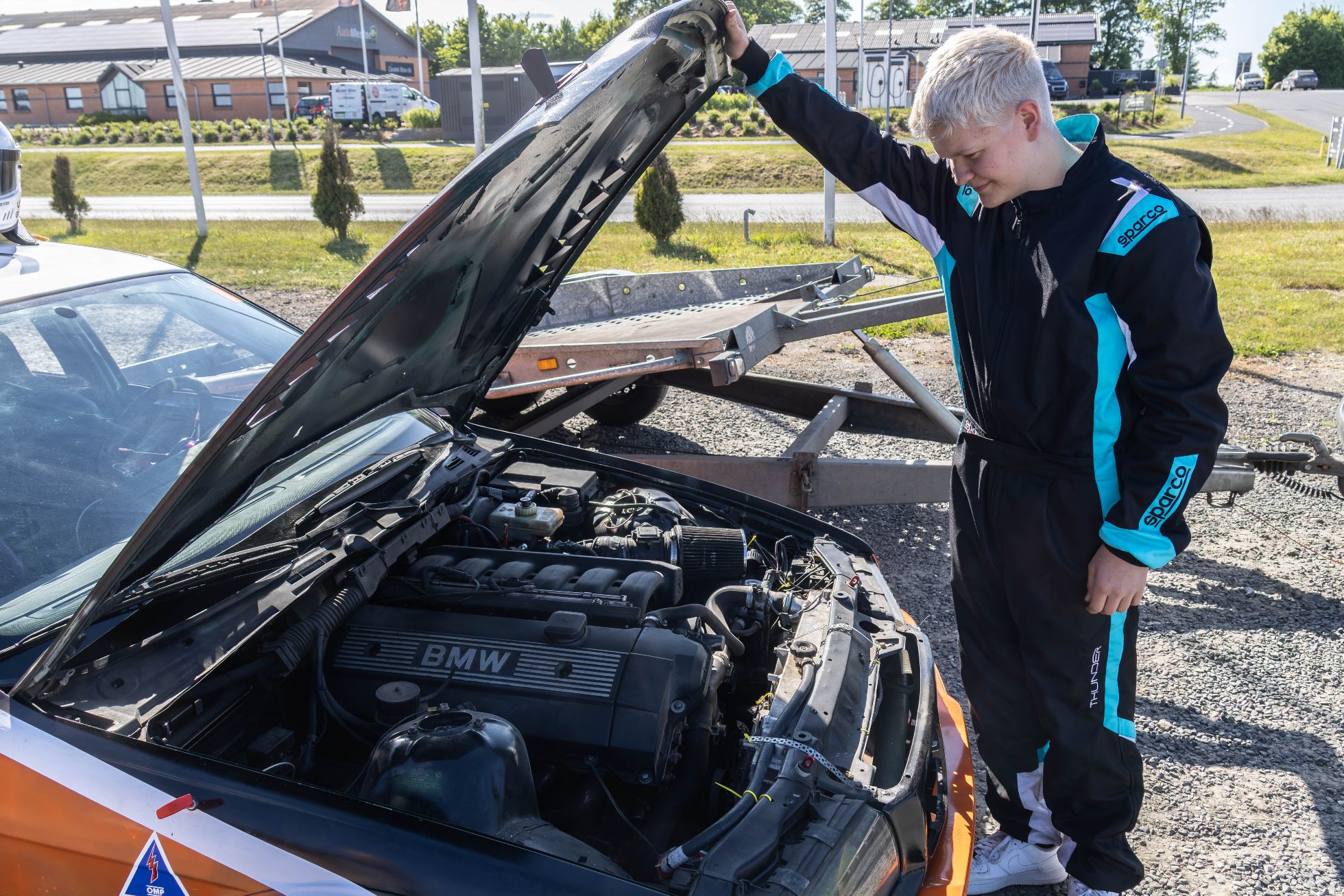 - Jeg har hørt om drifting i 1 år og kører i rookieklassen (begynderklassen, red.). Min bil er en BMW E36, der som udgangspunkt har 170 hk, men min far og jeg har piftet den op til 210 hk, og det er helt ok, det må man gerne, fortæller Magnus, der er 16 år og som går i 10. klasse på en efterskole.