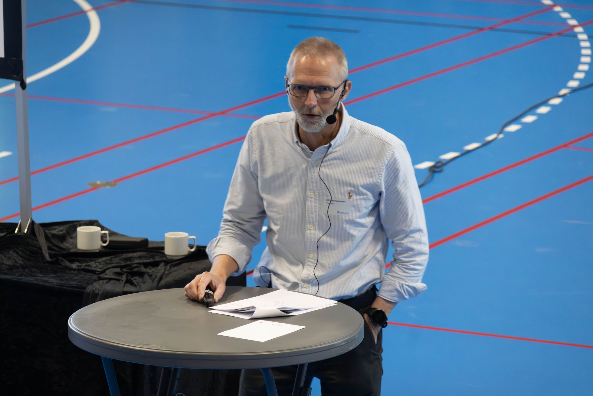 INFRASTRUKTUR: Godt en halv håndboldhal fyldte dagens gæster i Vestjysk Bank Arena, da Vejdirektoratet havde inviteret til infomøde om de nye ændringer på motorvejsstrækningen mellem Give og Billund.