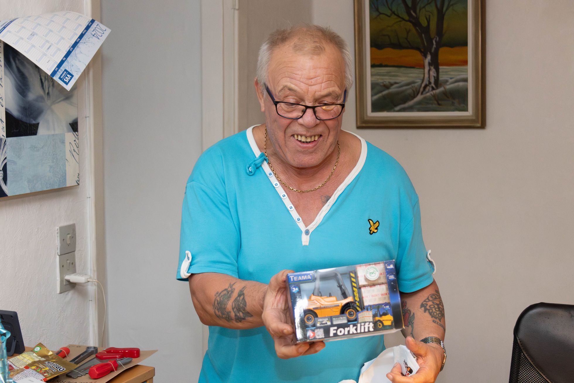 Hvad giver man lige en 73-årig 1-årig knægt i fødselsdagsgave. Legetøj, selvfølgelig. Foto: Jim Hoff