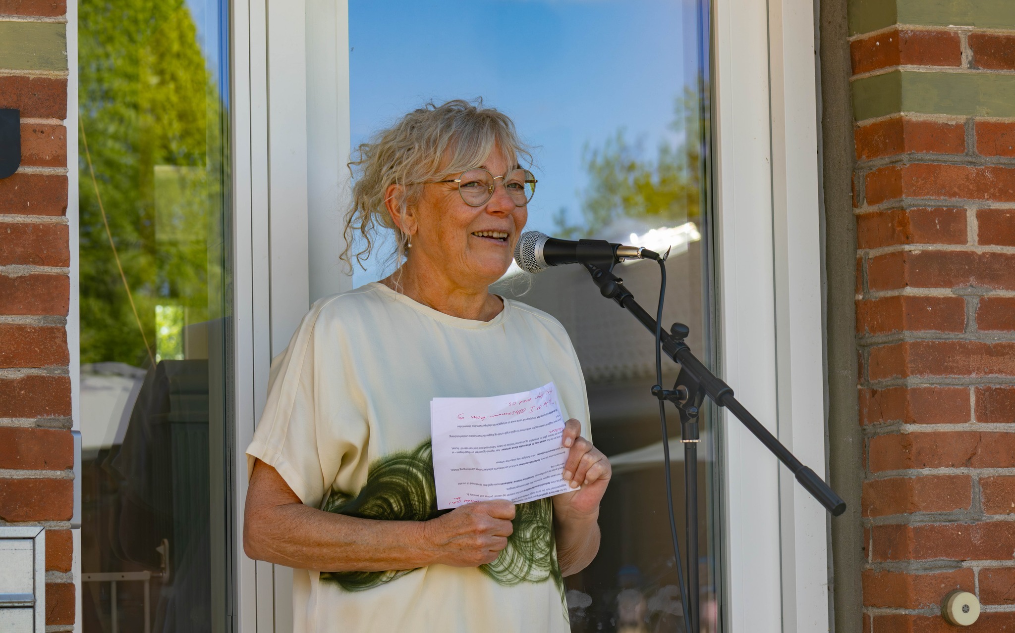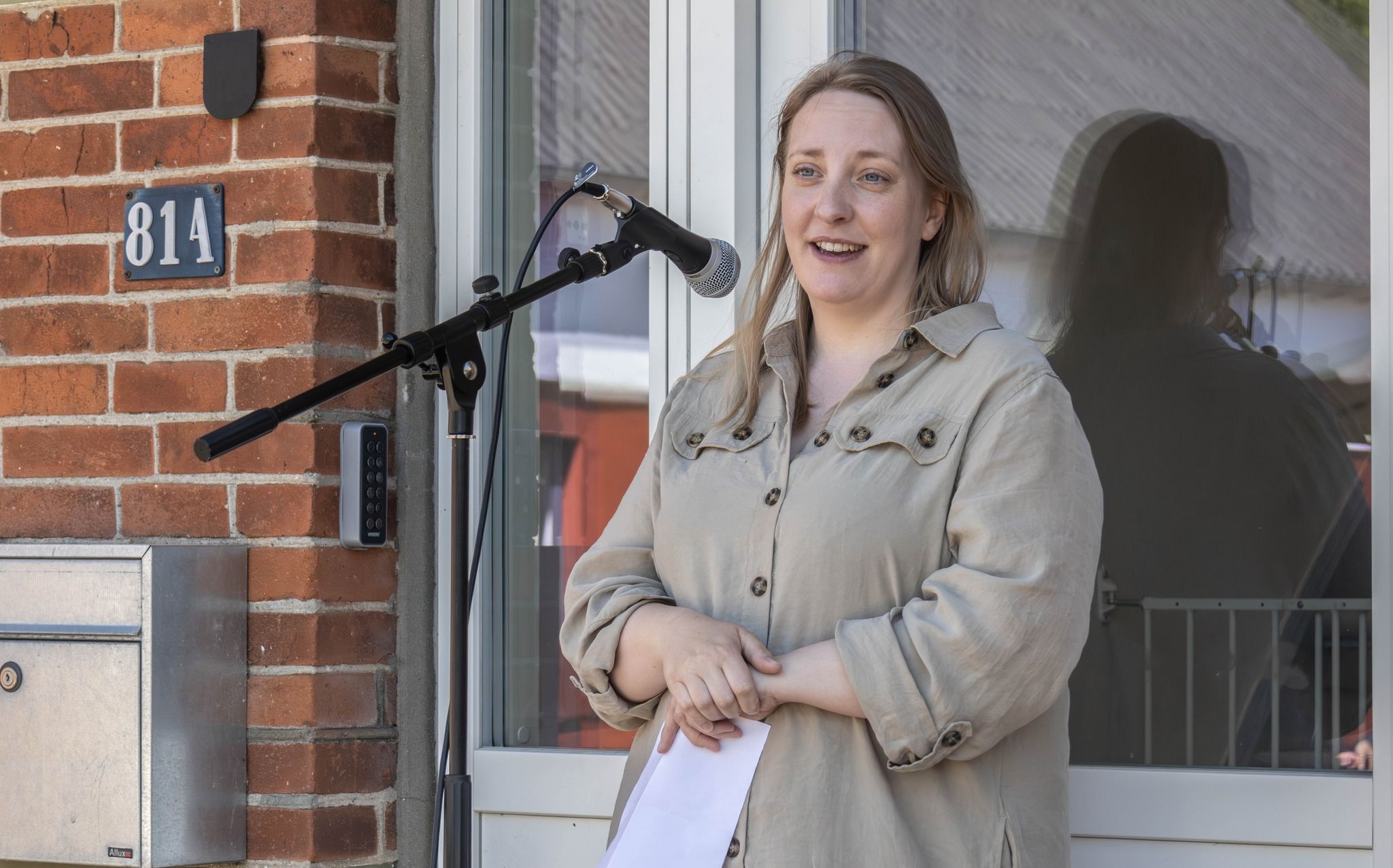 Dernæst var det formanden for forældrebestyrelsen, Sheila Hansen, der fik ordet, og hun fortalte, at hendes søn Arthur var et af de første børn, der startede i den nye daginstitution i 2024.