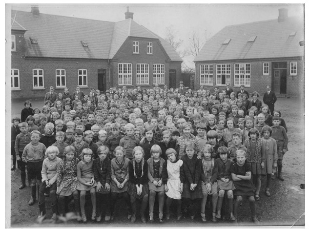 Give Skole 1931 med alle elever. Arkivfoto