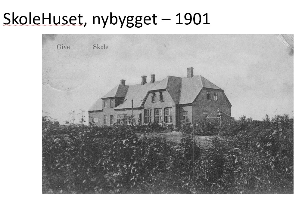 JUBILÆUM: Den 2. oktober fejrede byen 10-års jubilæum for indvielsen af kulturhuset Huset i Give. Jeg havde fornøjelsen af at fortælle lidt om Husets historie. Det er en ret vild historie, som kommer omkring mange sjove forandringer, området herude har gennemlevet i løbet af 1900-tallet. Her vil jeg forsøge at præsentere hovedtrækkene.