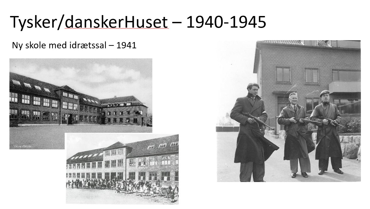 Jeg forestiller mig, at glæden var stor over, at skolebyggeriet blev færdigt – især fordi skolen nu endelig fik en gymnastiksal. Men det var samtidig en underlig periode i Danmarkshistorien. Danmark og Give var besat af tyskerne, og frem til 1945 fungerede Give Skole både som undervisningssted og som indkvartering og materiellager for den tyske besættelsesmagt. Der blev med andre ord ikke dyrket meget gymnastik i gymnastiksalen før befrielsen.