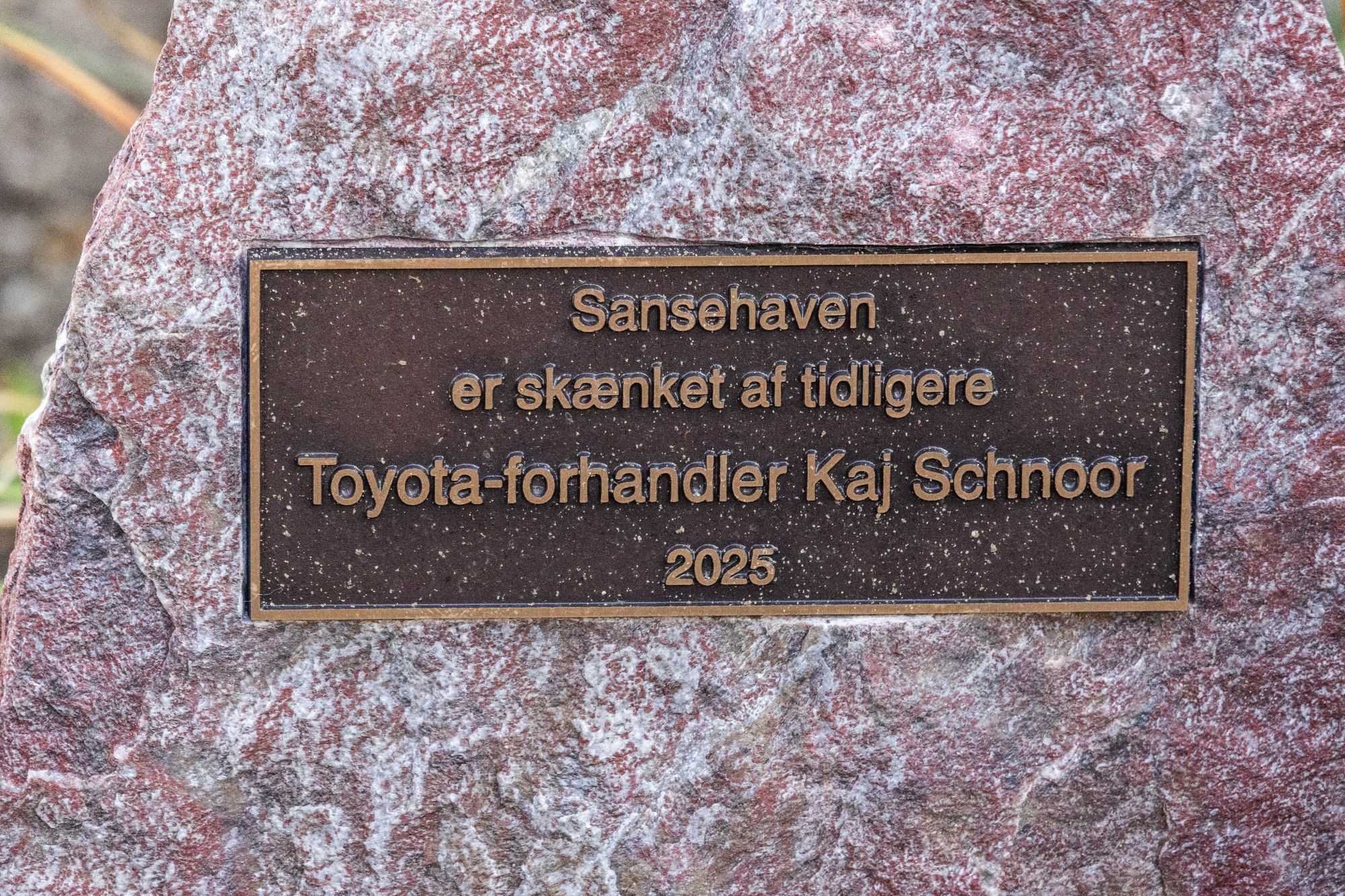 Sansehaven er en donation fra en af beboerne i Hus 12, 86-årige Kaj Schnorr, som vi jo alle sammen kender fra hans tid som Toyota-forhandler i Give gennem mange år og generelt en markant og populær skikkelse i bybilledet.