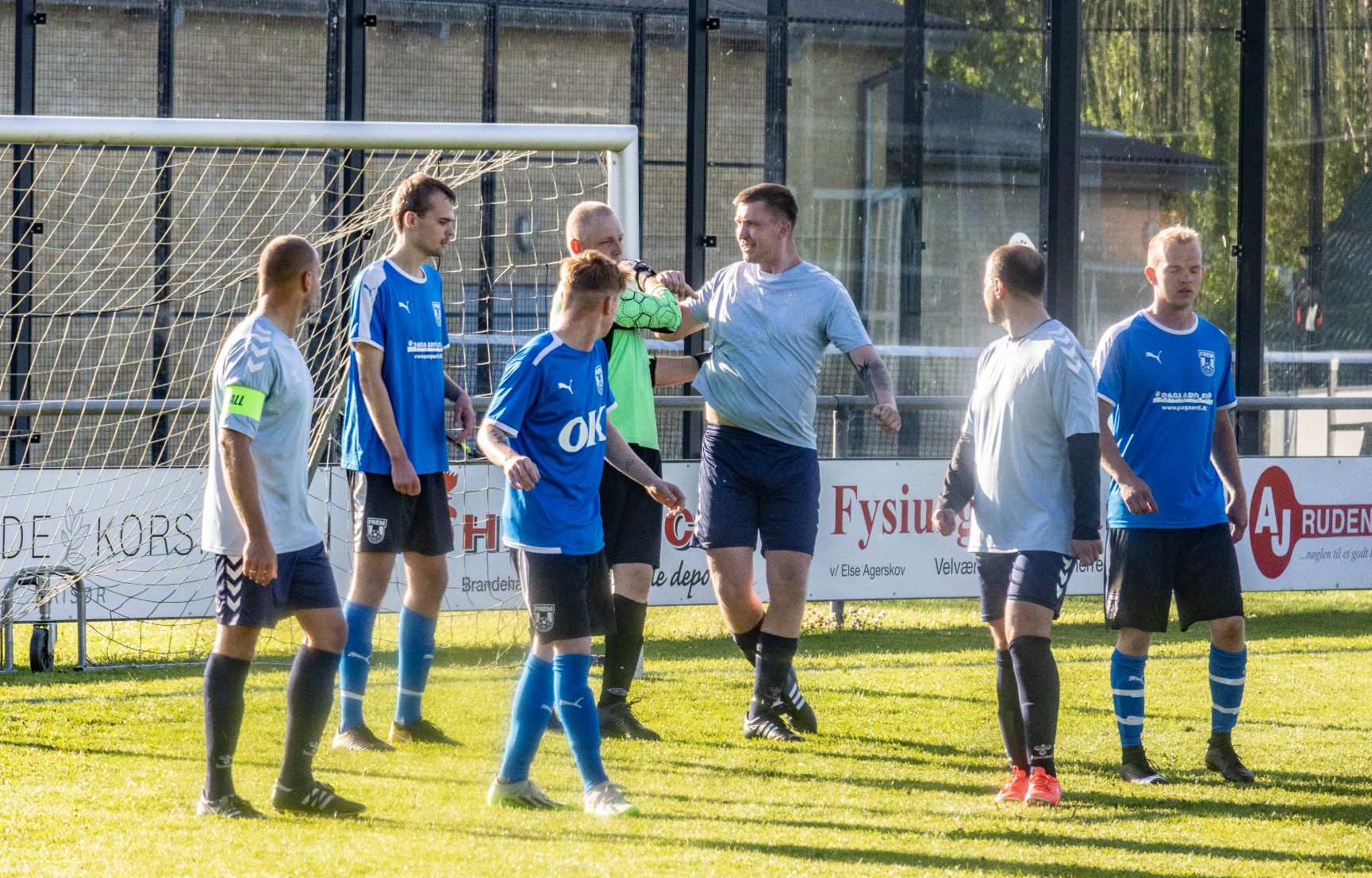 - Vi var nogle stykker, der mente, at det var på tide, at der kom gang i noget seniorfodbold her i Thyregod, så vi pressede lidt på for at få nogle spillere i gang. Det lykkedes jo rigtig fint, og jeg må da indrømme, at det her 7-mandsbold er noget mere seriøst, end jeg havde forventet. Når først folk går på banen, jamen så er det sgu’ for at vinde – hver gang – og det kan jeg jo godt lide, konstaterer den rutinerede målmand med et stort smil og knyttet målmandshandske.