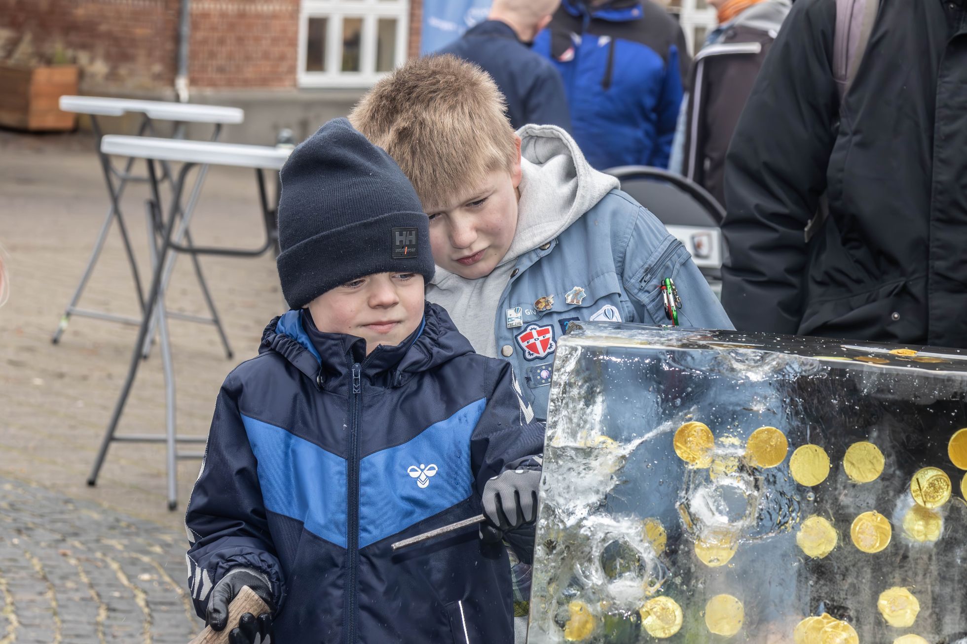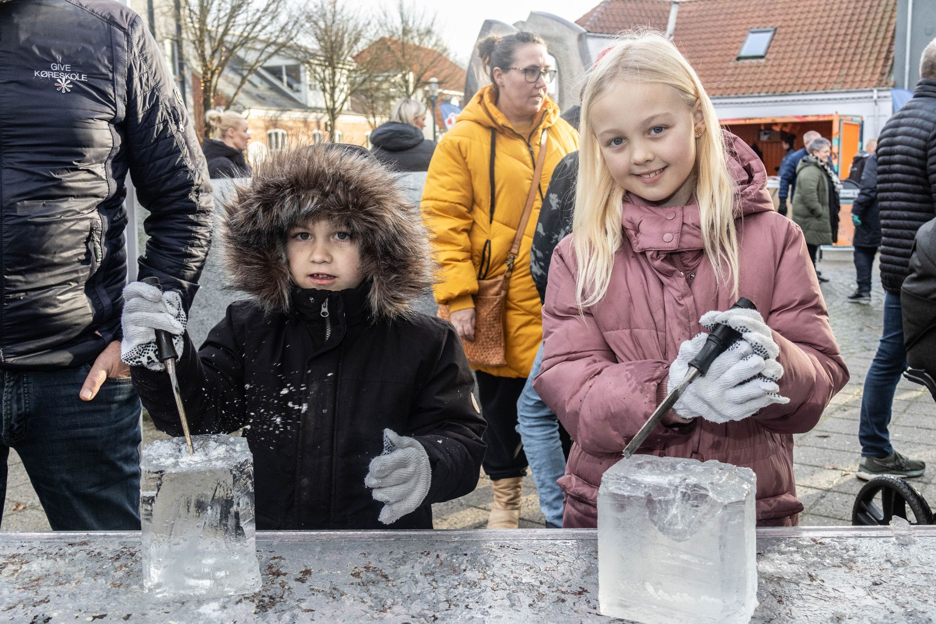 - Vores tiltag med at finde guld i isblokken ved Væksttræet på Torvet var også en kæmpesucces. Allerede klokken 10.00 mødte de første frem og var klar til at hugge efter guld. Der var konstant børn og voksne ved isblokken under hele eventen frem til 14.45, hvor vi trak vinderen af gavekortet. Det blev Mette Risager fra Give, der lige kunne bruge 1000 kroner ekstra på julegaver, fortæller Hanne Lund.