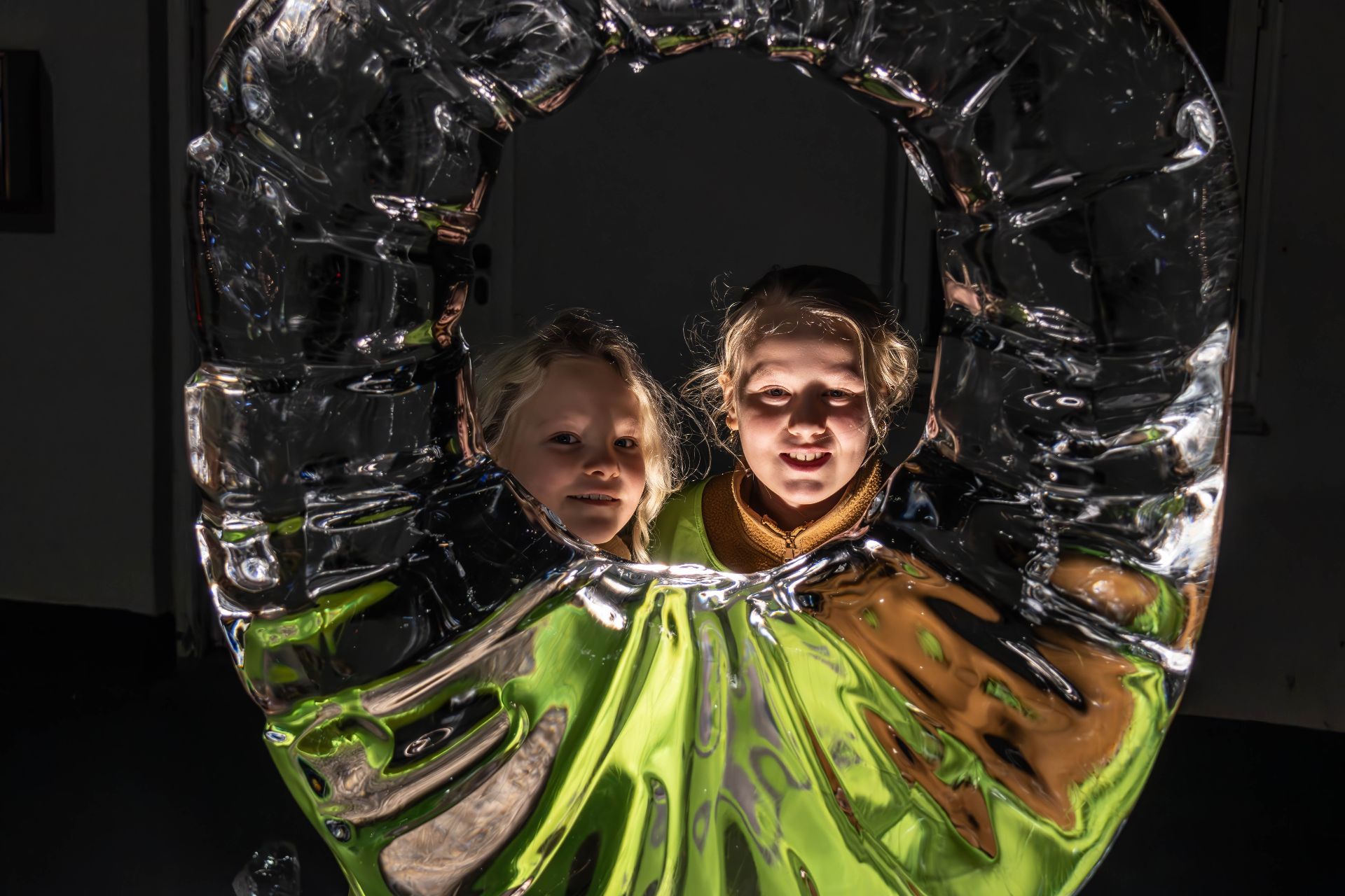 Ice for Kids var som altid en kæmpesucces med enorm tilslutning. Disse to søde piger havde taget turen fra Horsens-egnen for at komme til isskulpturfestival - sejt. Foto: Jim Hoff