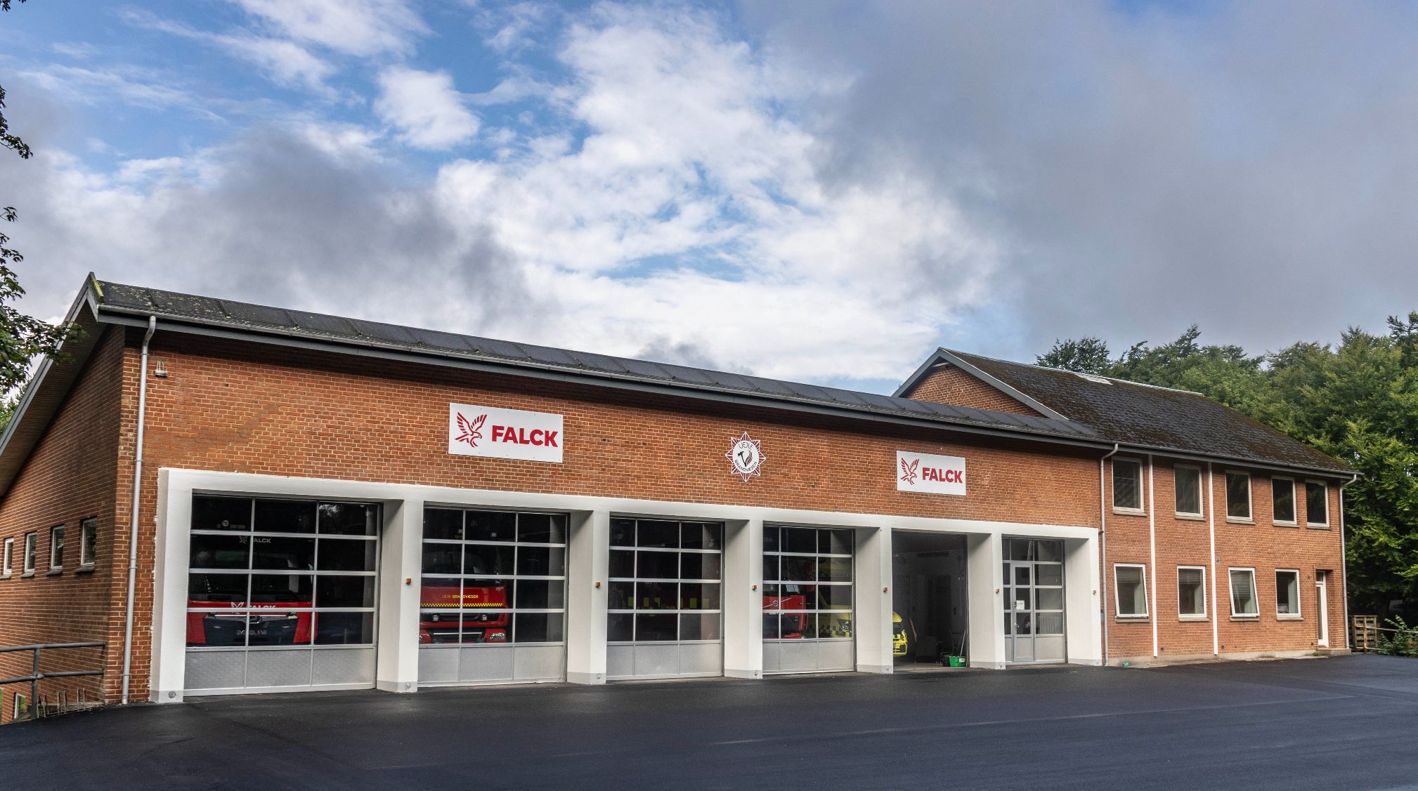 Falck stationen blev indrettet i P. A. Poulsens ejendom i Jernbanegade hvor de gamle vognskure blev ombygget til vagtstue og 4 garager. I gården bag, blev der bygget en galge til ophængning af slanger. Senere kom et slangetårn.