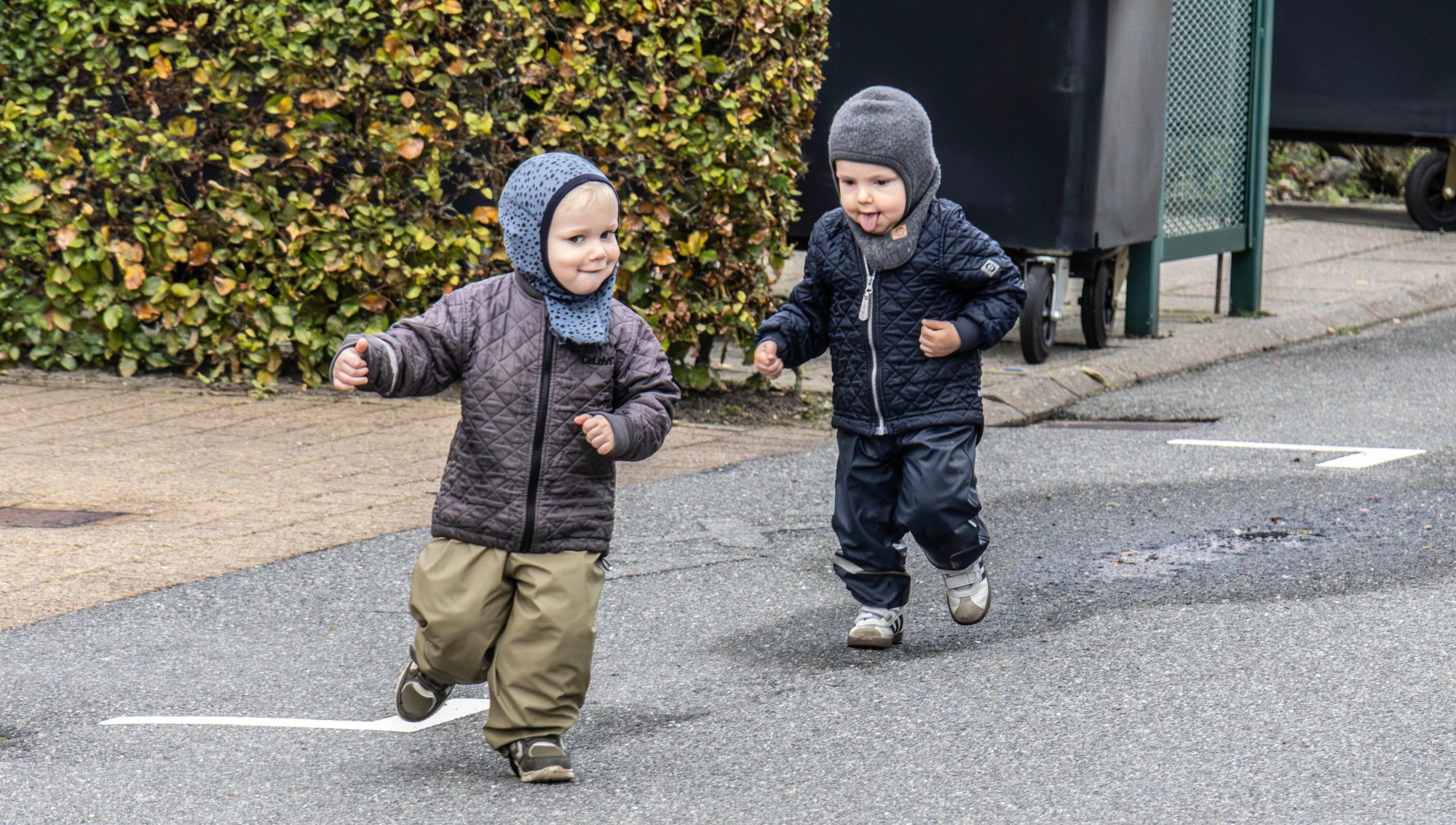 Da børnene var ankommet, var der fælles legeopvarmning med gymnastik og fællessang foran indgangen ved Kastaniehaven, hvor det var Lene fra Søndermarkens Børneunivers og Susanne fra Kastaniehaven, der førte an i løjerne.